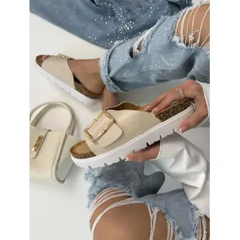 Dámske šľapky so zlatou ozdobou BEA