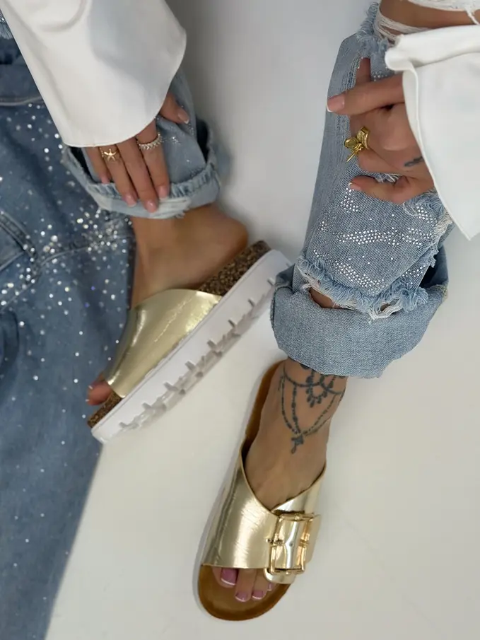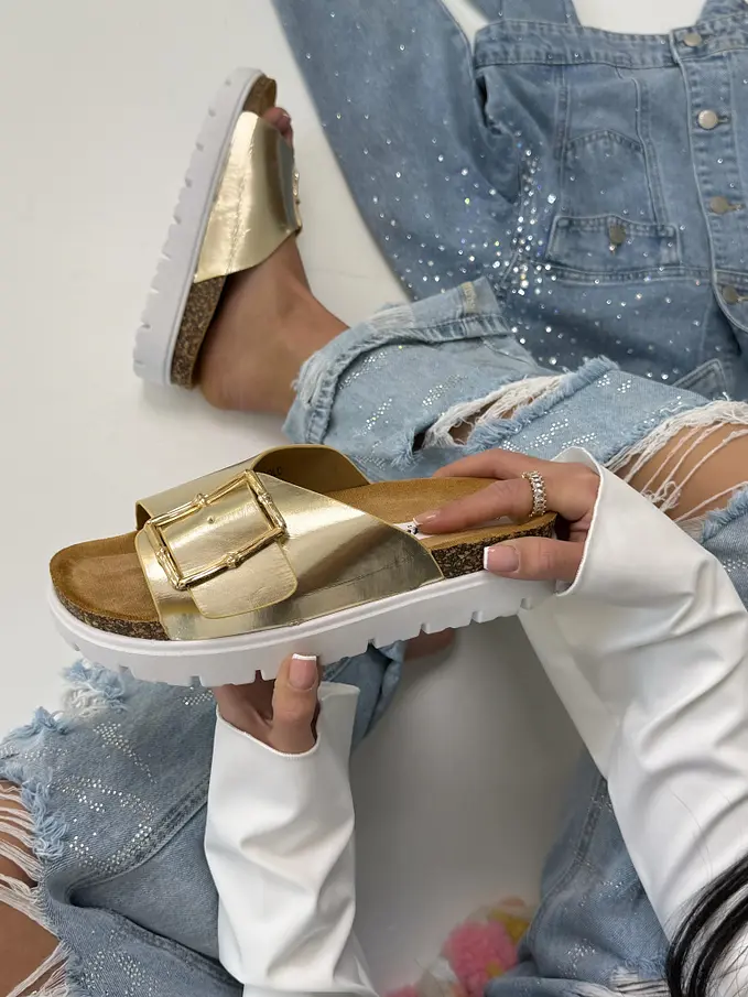 Dámske šľapky so zlatou ozdobou BEA