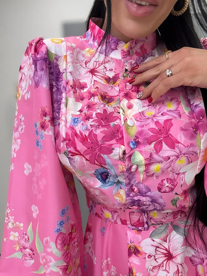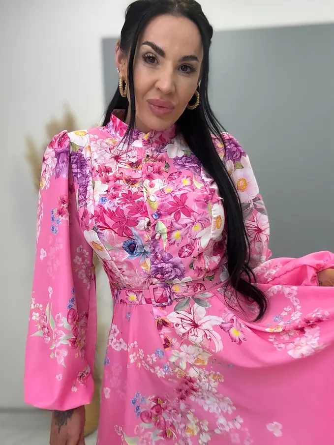Prémiové šaty priamo z Talianska. Kvetované šaty so gombíkmi a opaskom. Materiál je elastický.