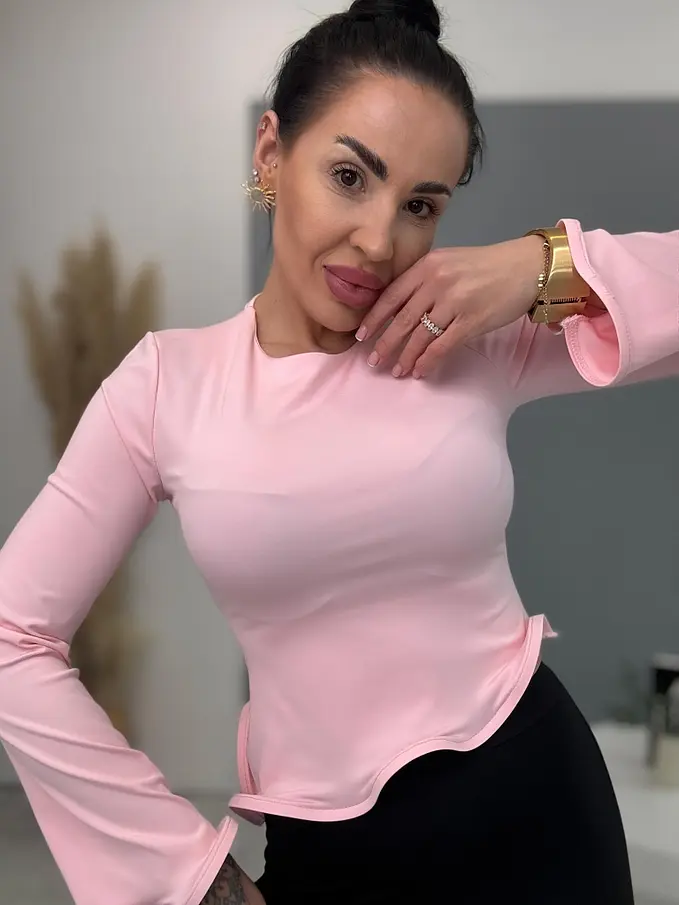 Asymetrický top s vystuženými volánmi. Špeciálny kúsok, ktorý oživí každý outfit.