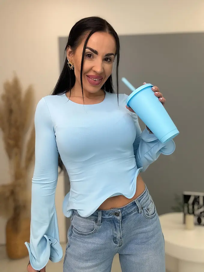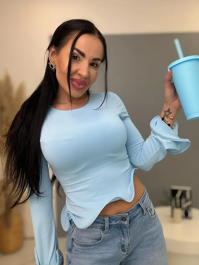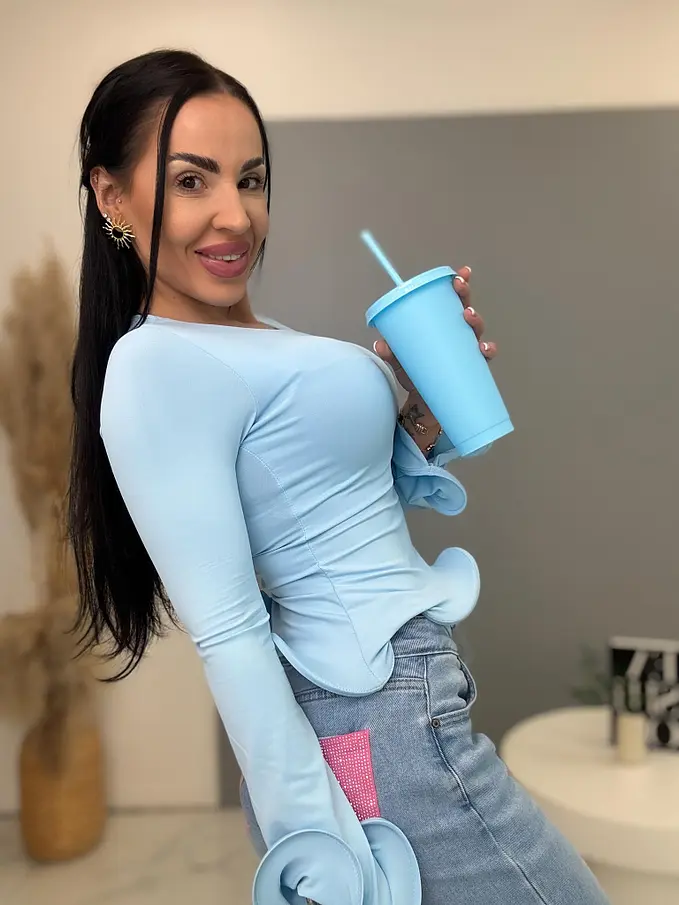 Asymetrický top s tvarovanými volánmi. Špeciálny kúsok, ktorý oživí každý outfit.