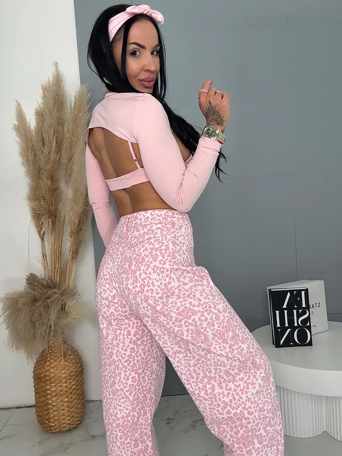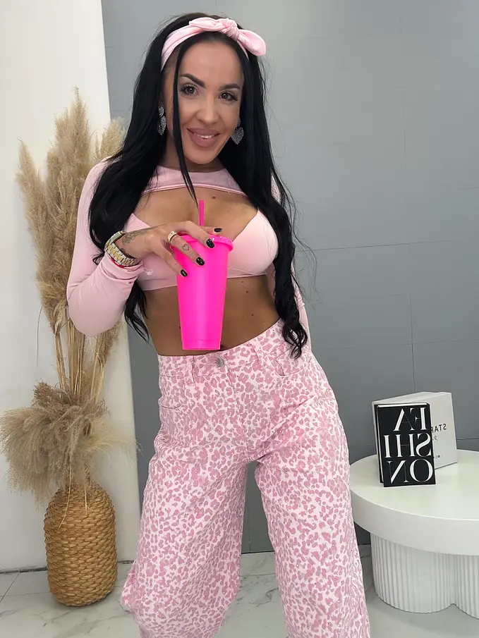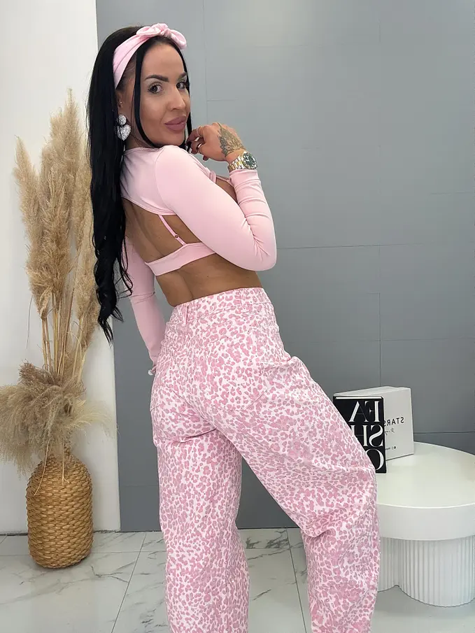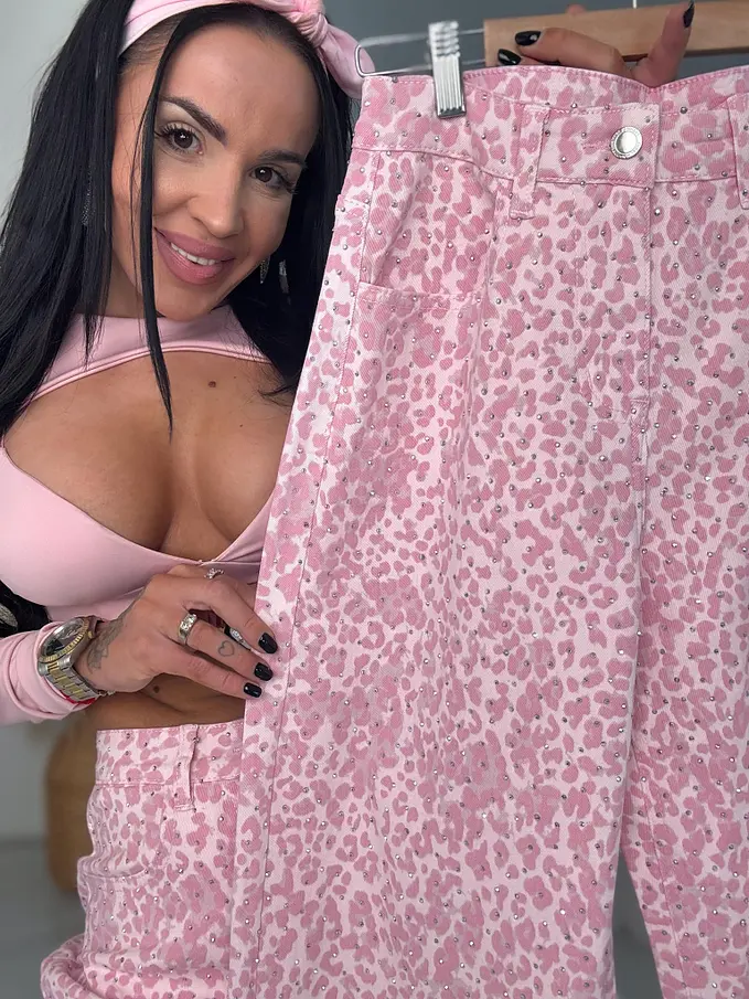 Balloon baby pink elastické leopardie rifle s kamienkami LUXORA
