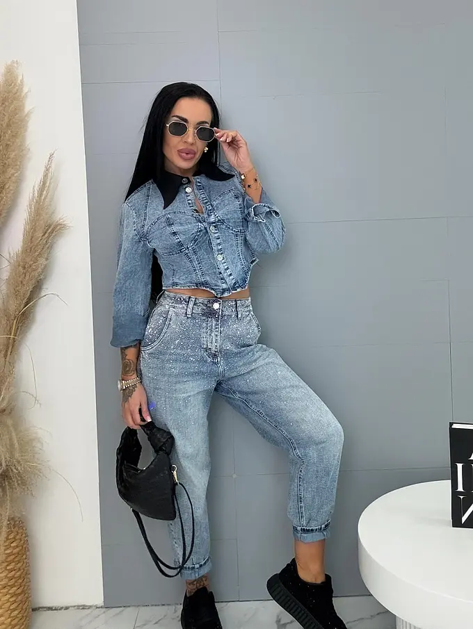 Premium kvalita. Materiál je iba minimálne elastický. Džínsy v balónovom strihu.