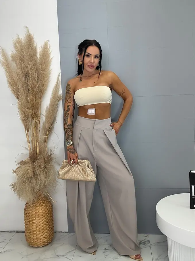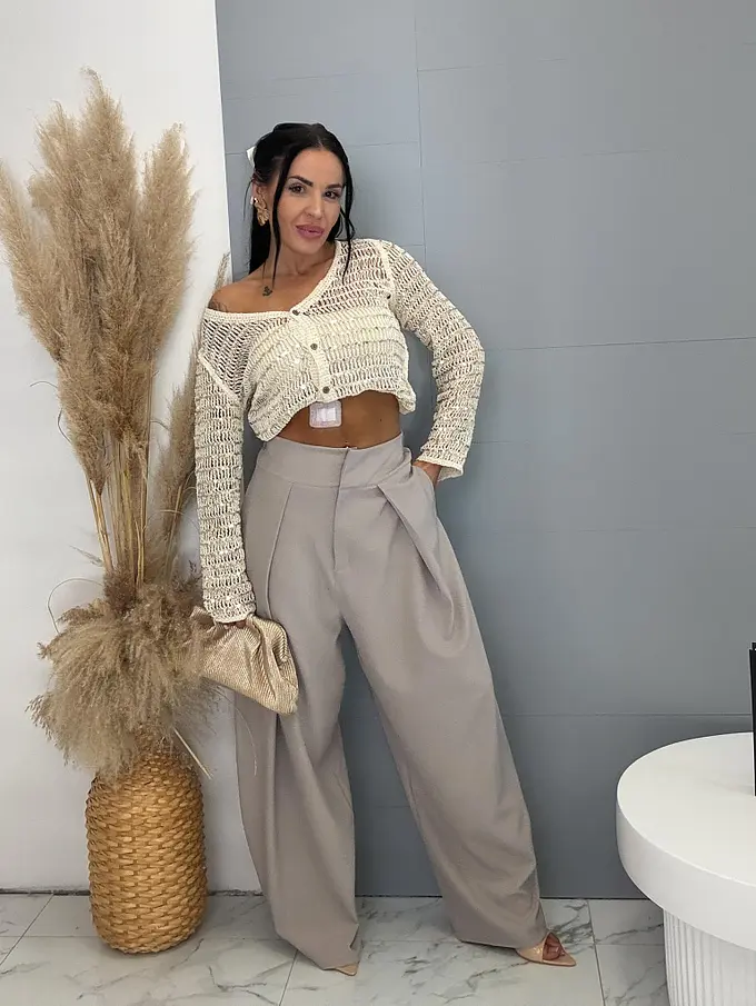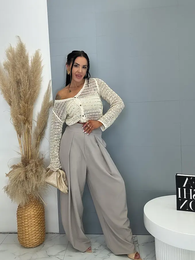 Prémiovej kvality talianske nohavice balónového strihu s elastickou zadnou časťou, zapínanie na gombík.
