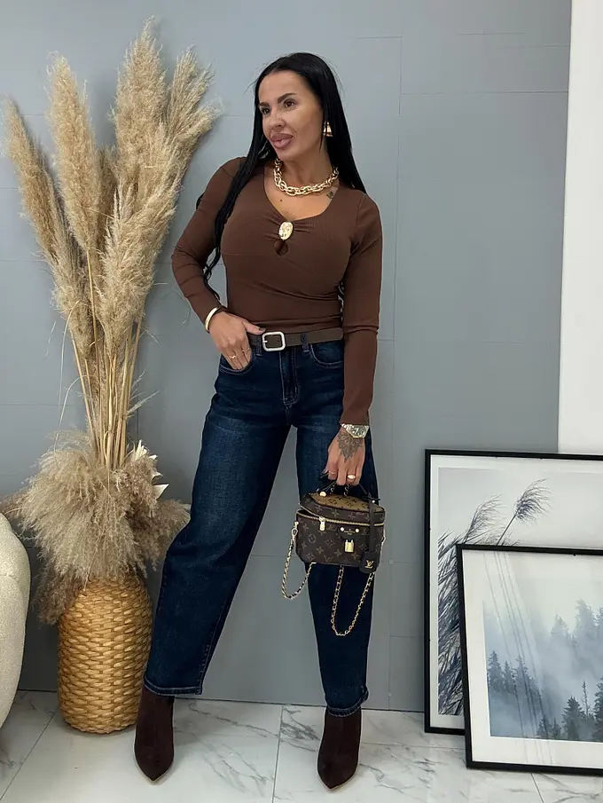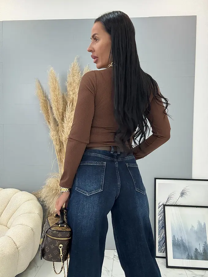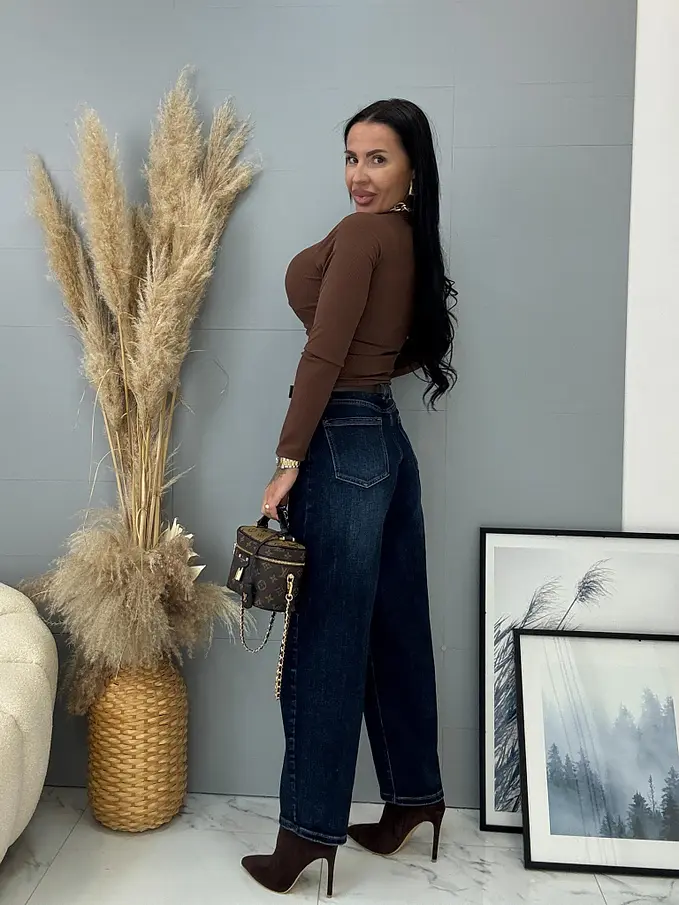 Modelka čiernovláska meria 164 cm a váži 57 kg. Nosí veľkosť XS.