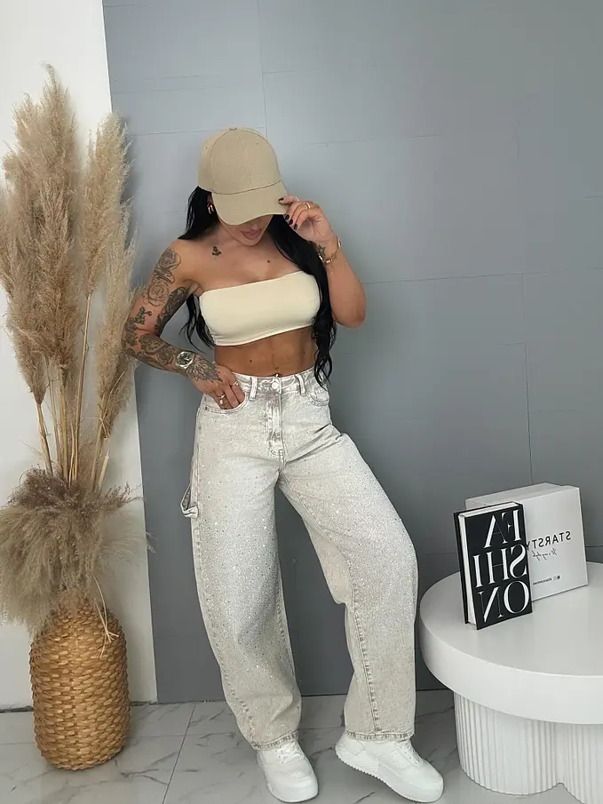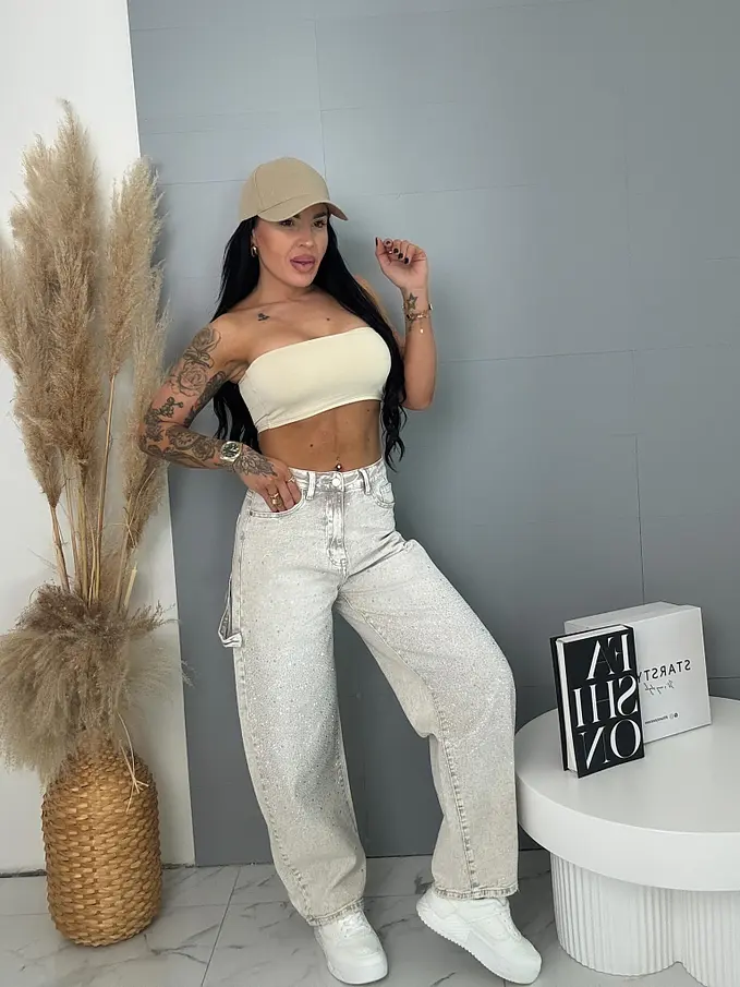Balónové rifľové nohavice s kamienkami SPARKLE