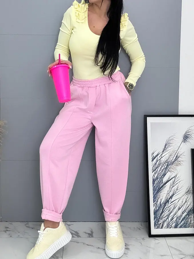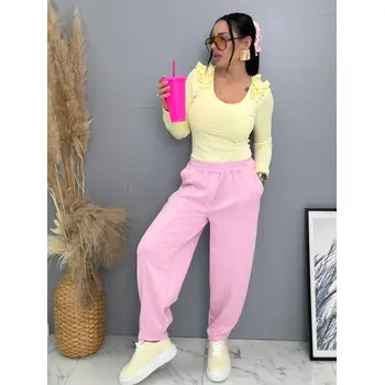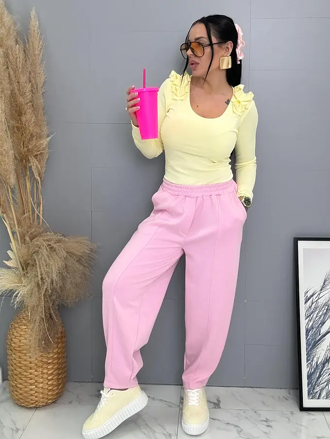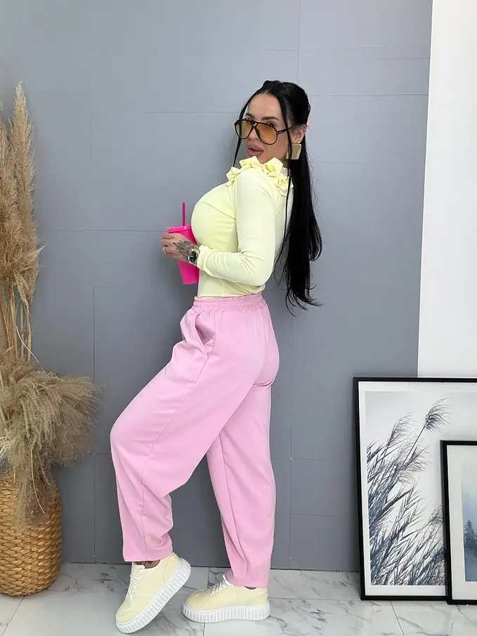 Nohavice sú vyrobené z príjemného materiálu. So bočnými vreckami a gumeným pásom.