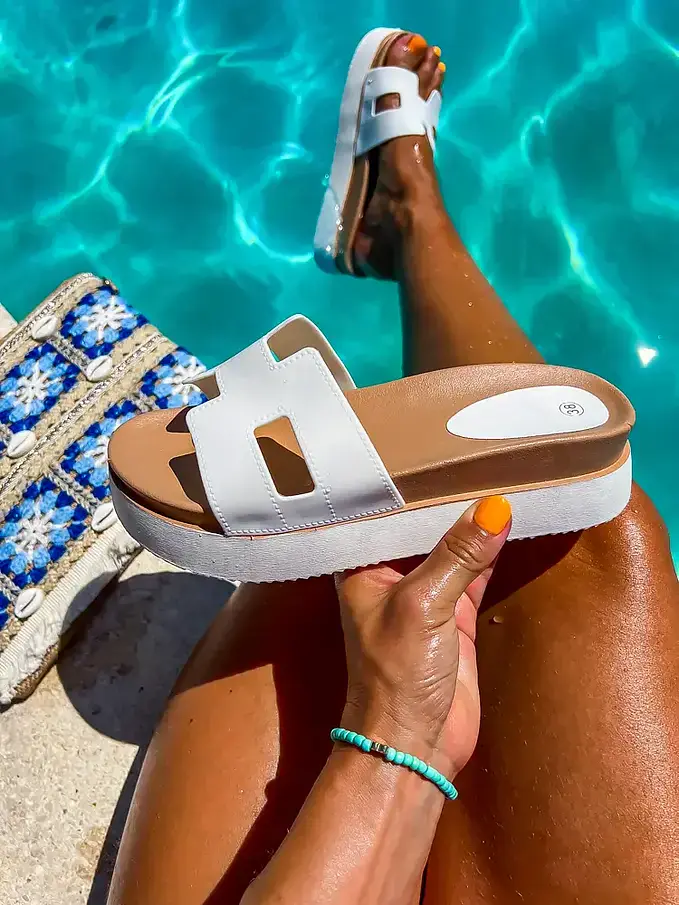 Biele platformové šľapky LUNNA-