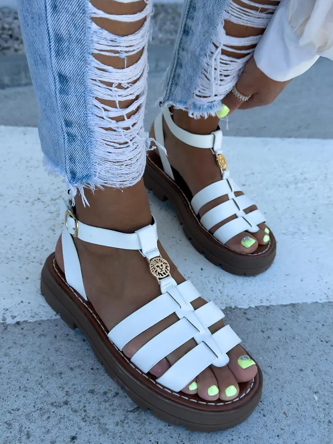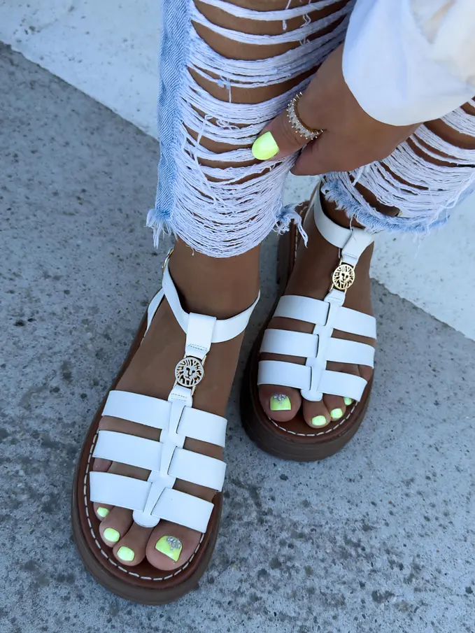 Biele sandále so zlatou ozdobou ROMANA-