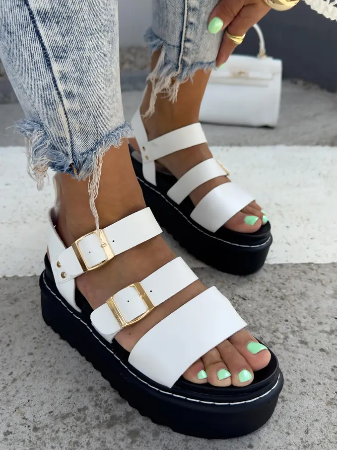 Biele sandále zo zlatými aplikáciami CLOVER-