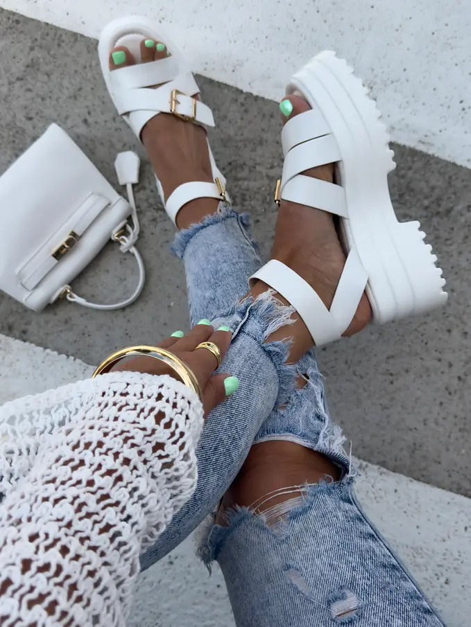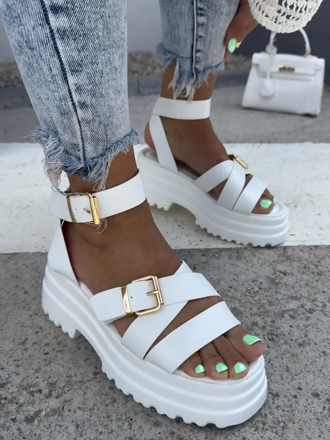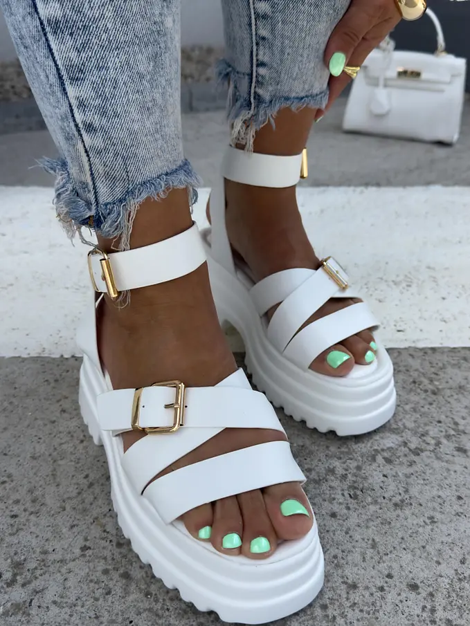 Biele sandále zo zlatými aplikáciami SHENAYA-