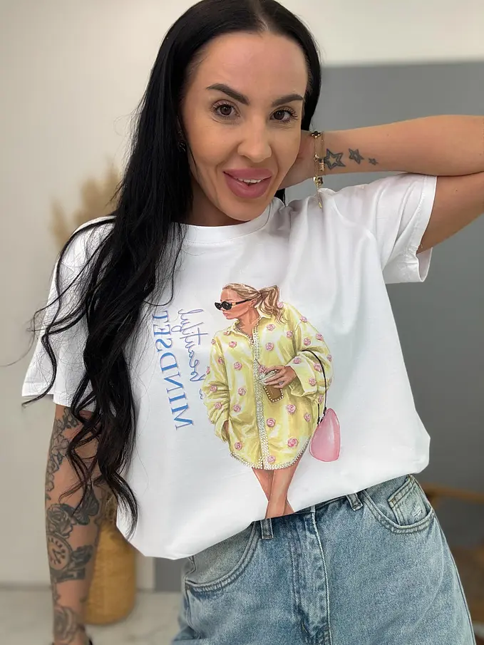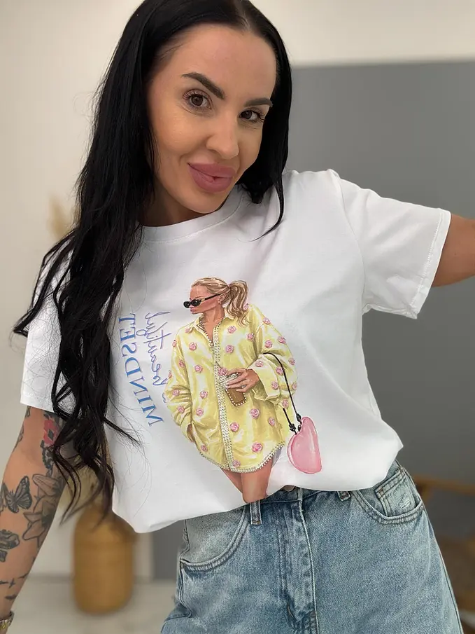 Biele tričko s kamienkami a potlačou ELLA