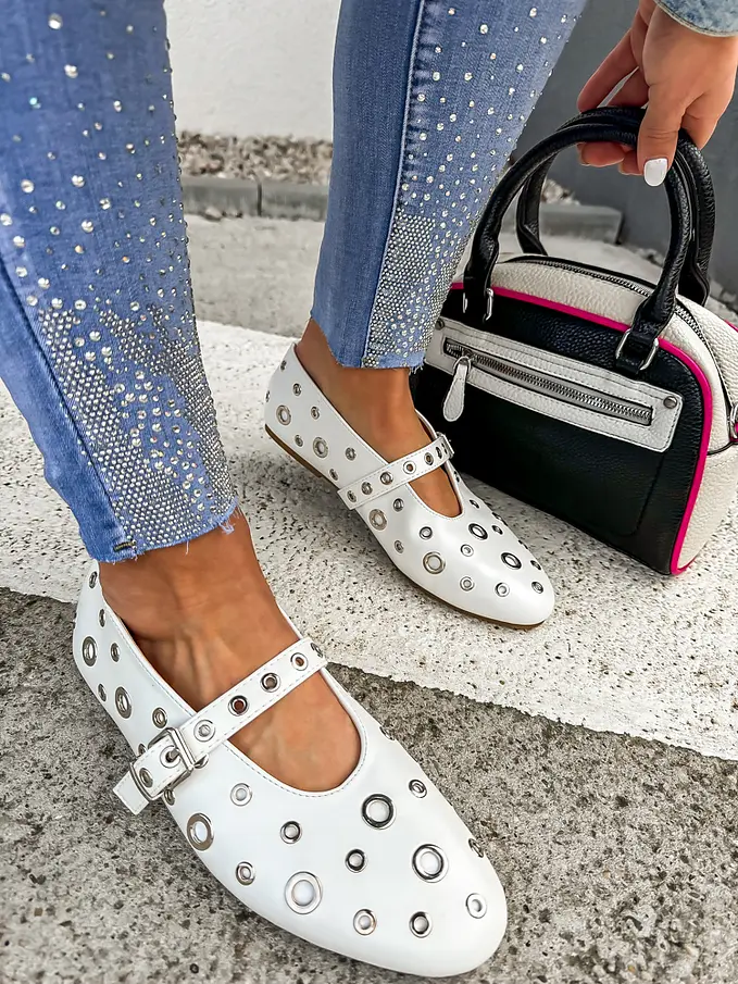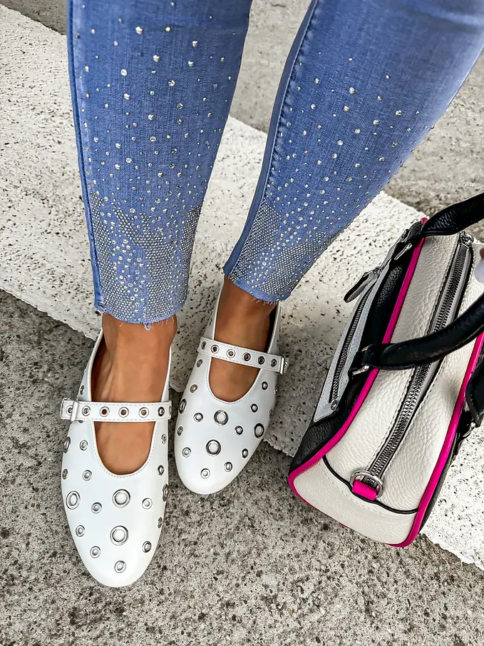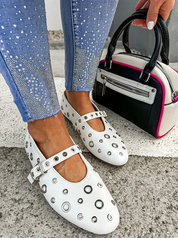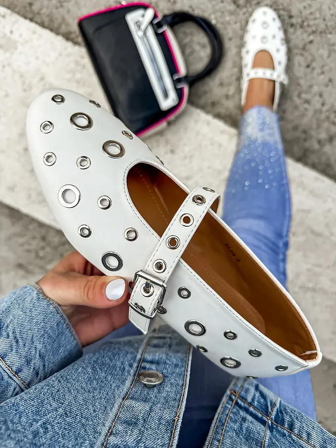 Biele vybíjané balerínky MINURI-
