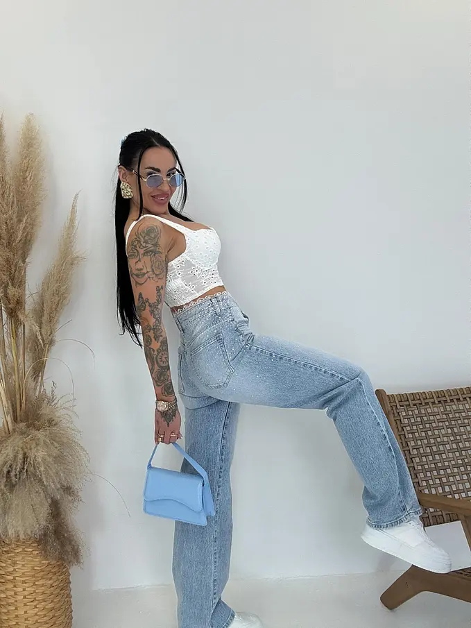 Crop-top je vyrobený z príjemného neelastického materiálu.