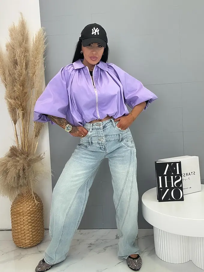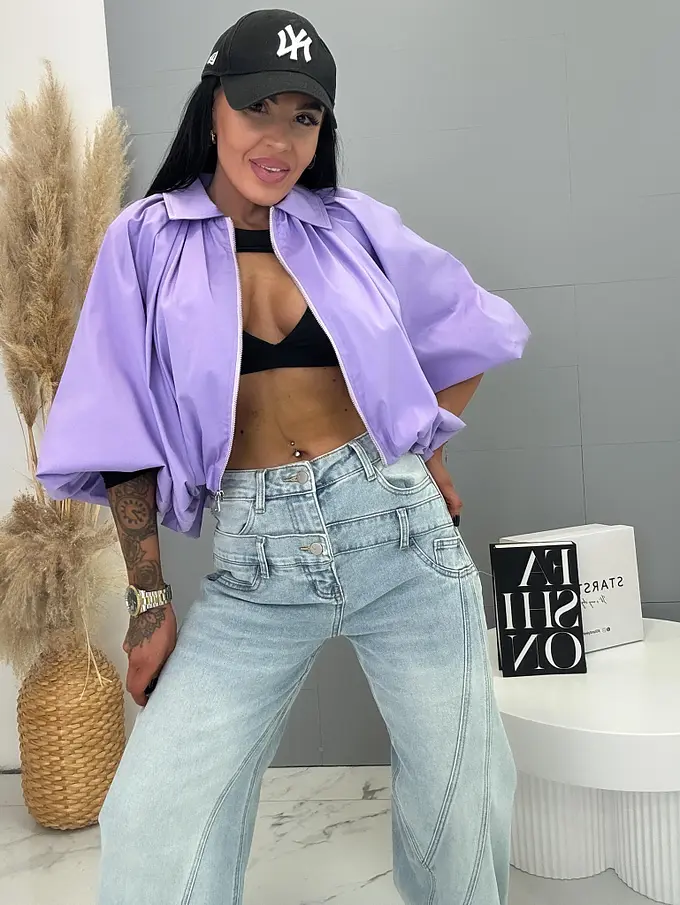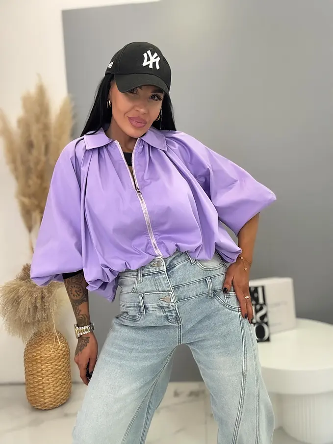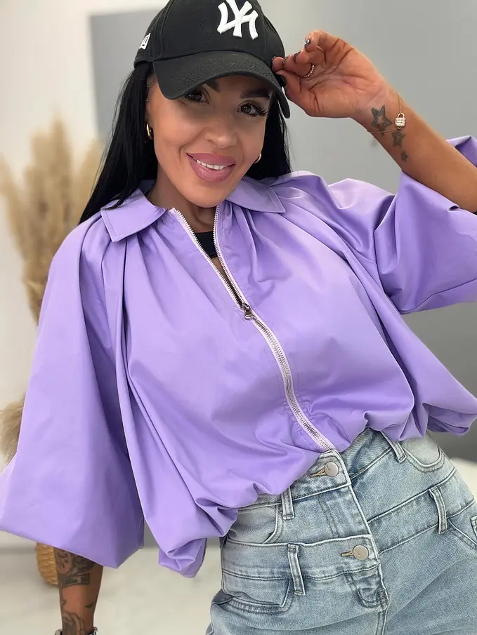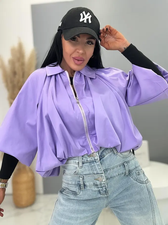 Bunda vyrobená z kvalitného materiálu. So striborným zipsom. Jemne stiahnutý spodný lem.