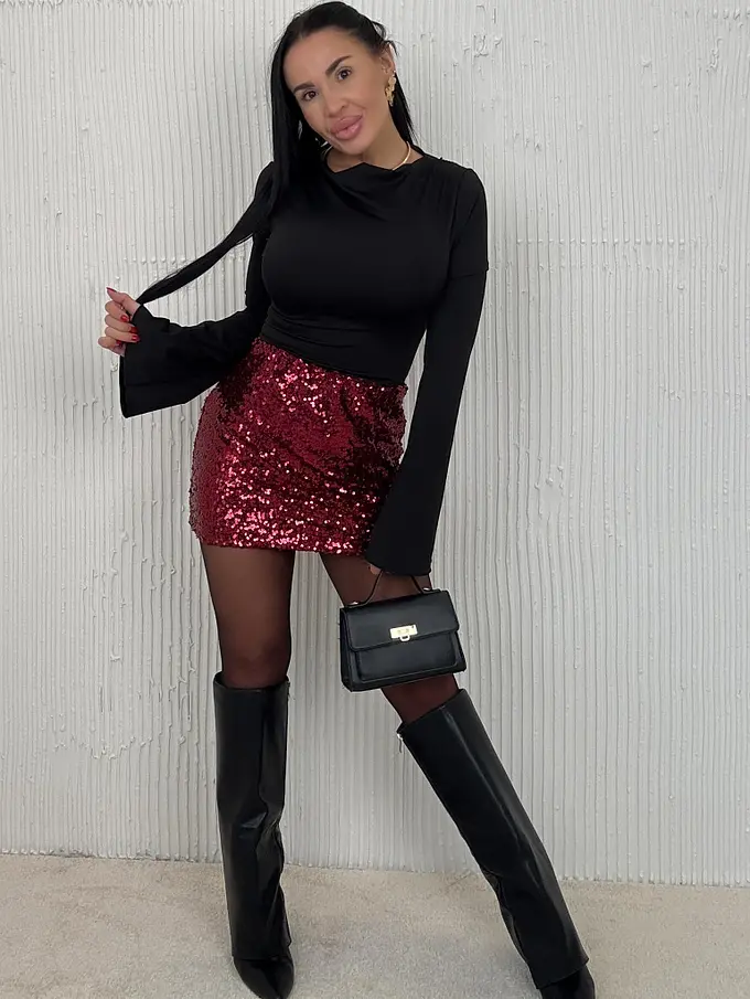 Modelka čiernovláska meria 164 cm a váži 57 kg.