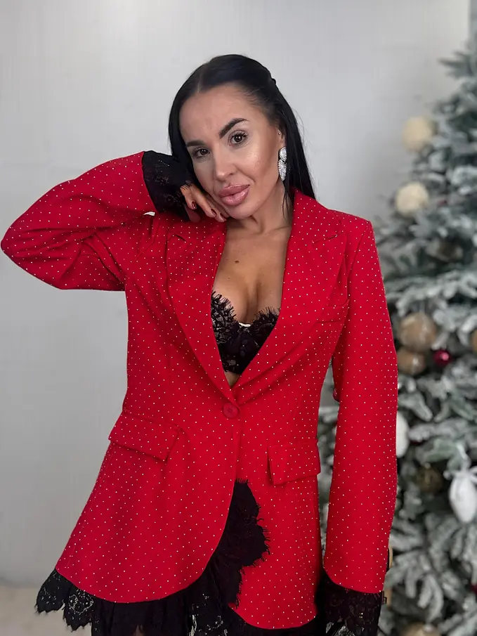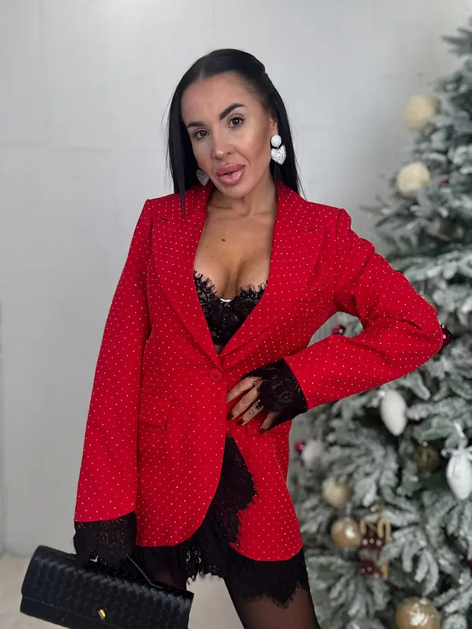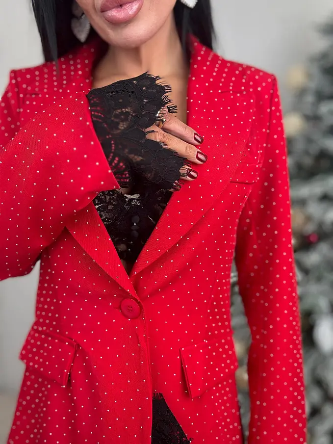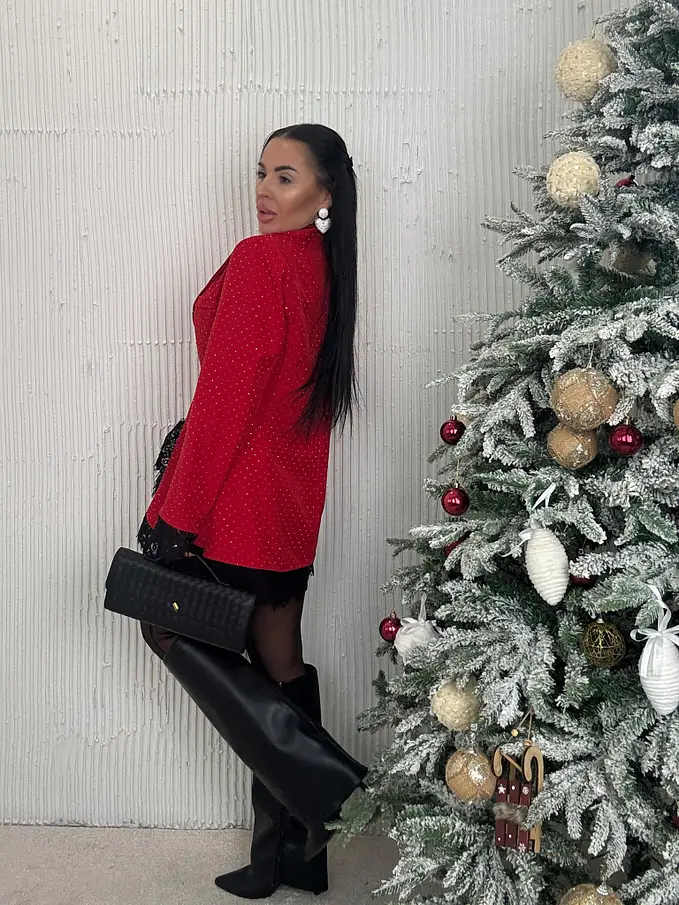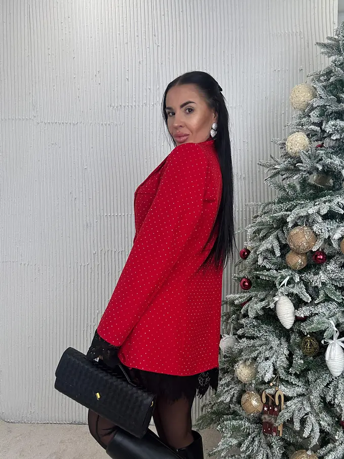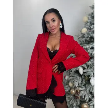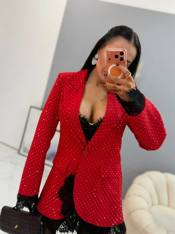 Červené trblietavé sako s čipkou SELINA