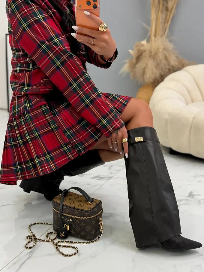 Štýlová aj v sychravom počasí? Čižmy perfektne doplnia napríklad slim džínsy a vestu z kožušinky. Čižmy nie sú zateplené. Ozdoba má zlatú farbu.
