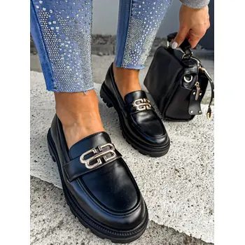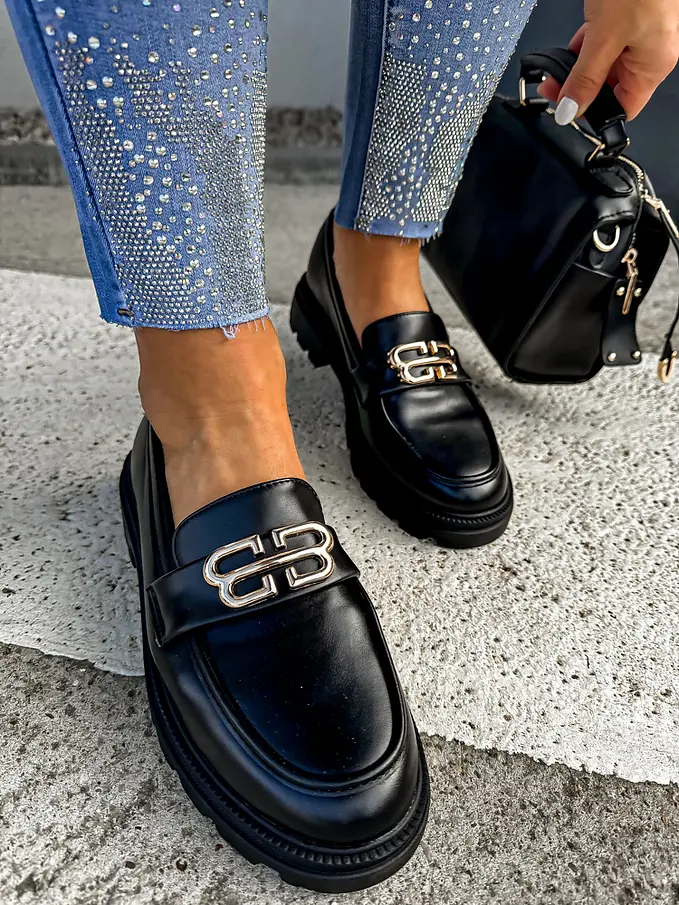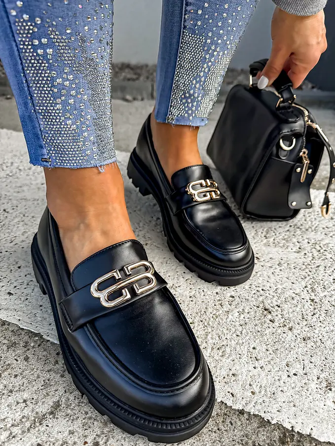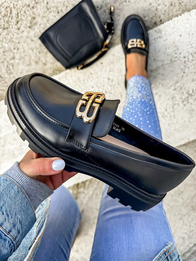Čierne mokasíny so zlatou ozdobou VENDULA-