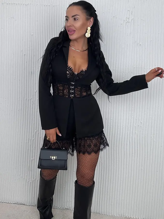 Čierne sako s čipkou AIKO