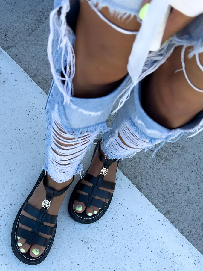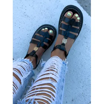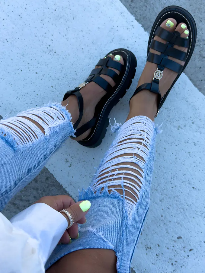 Čierne sandále so zlatou ozdobou ROMANA-