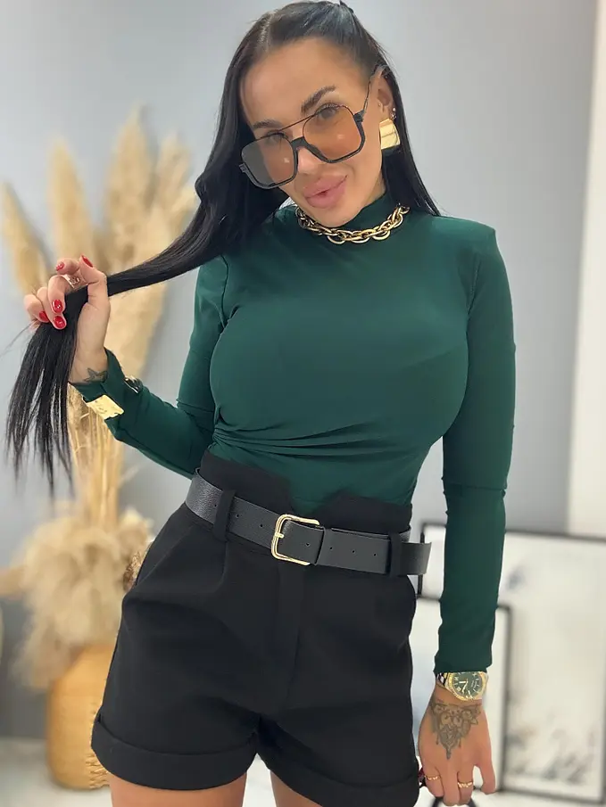 Ženské šortky s opaskom. Látka je mierne elastická, príjemná a teplá.