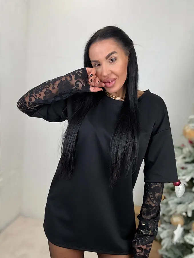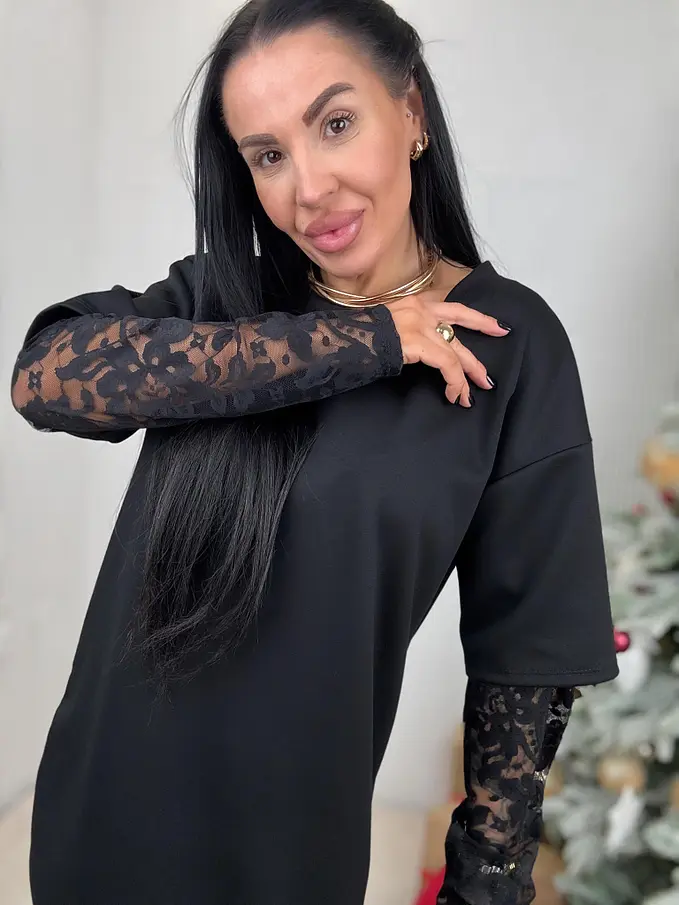 Čierny pulóver s čipkou KATHIE