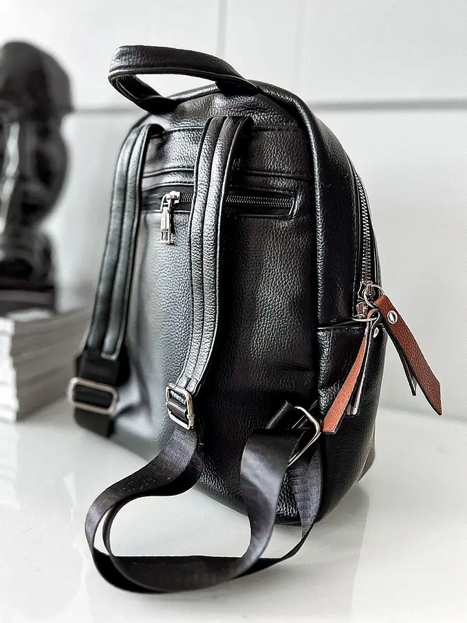 Ruksak vyrobený z mäkkeho materialu. Má priestranné vnútro s malými vreckami na drobnosti, uzatvára sa zipsom. Pohodlne sa nosí koženými popruhmi na ramenách alebo uškom v ruke.