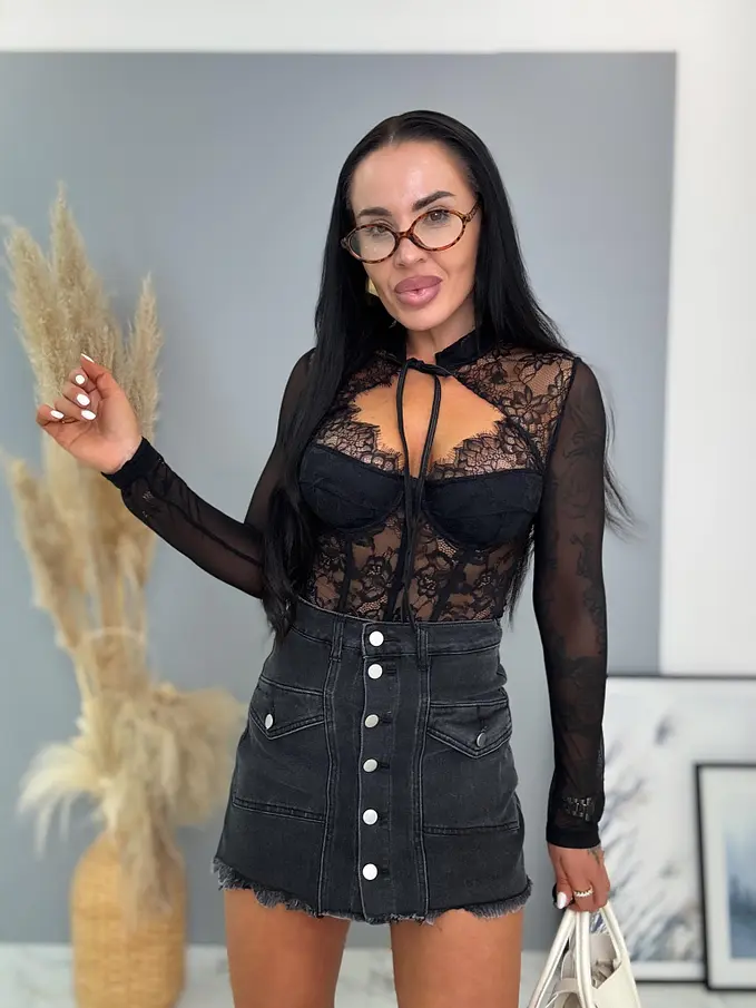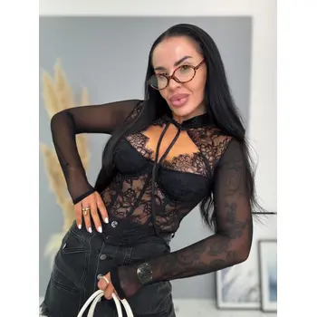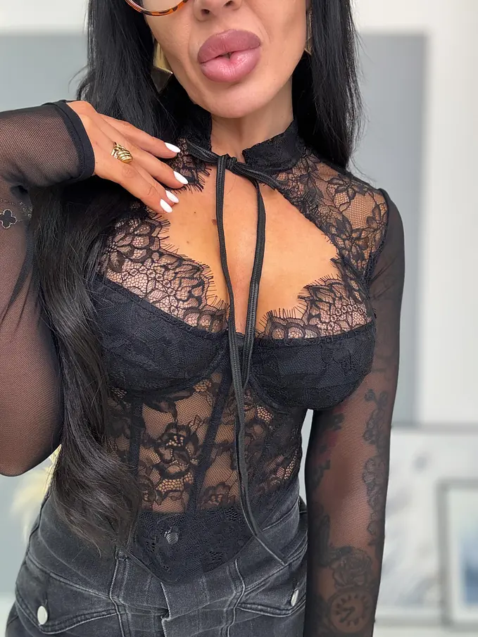 Čipkovaný korzetový top s priliehavou sieťkou ELENI
