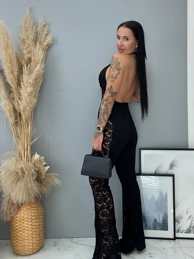Čipkovaný overal so zaväzovaním okolo krku TIVARIA
