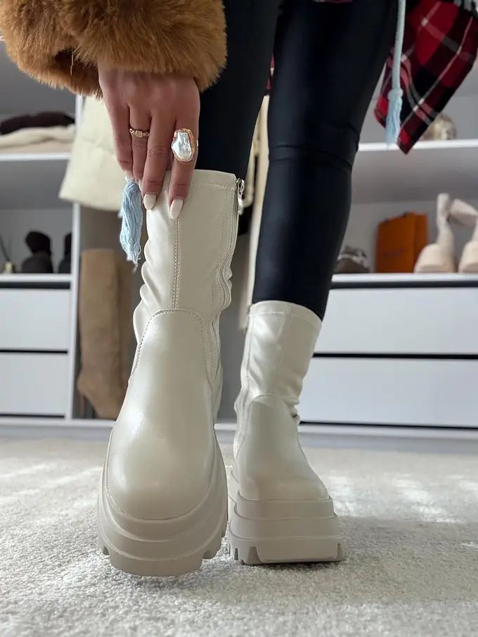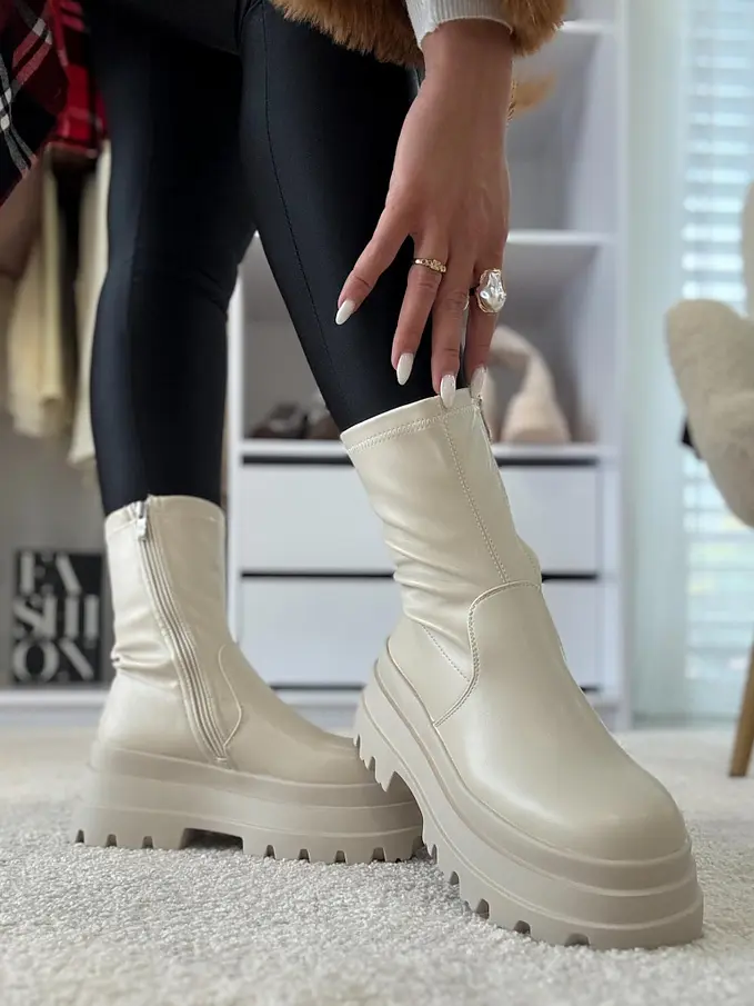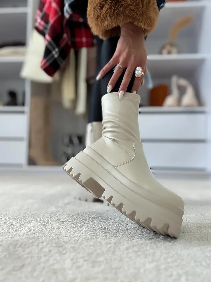Štýlová aj v sychravom počasí? Čižmy perfektne doplnia napríklad slim džínsy a vestu z kožušinky.