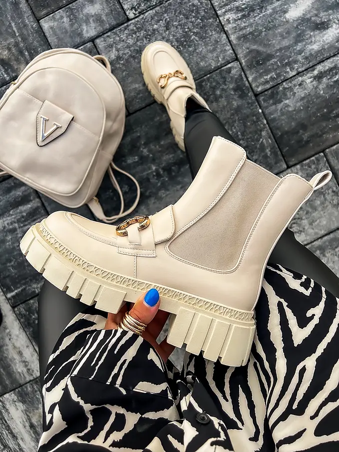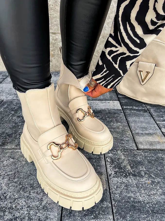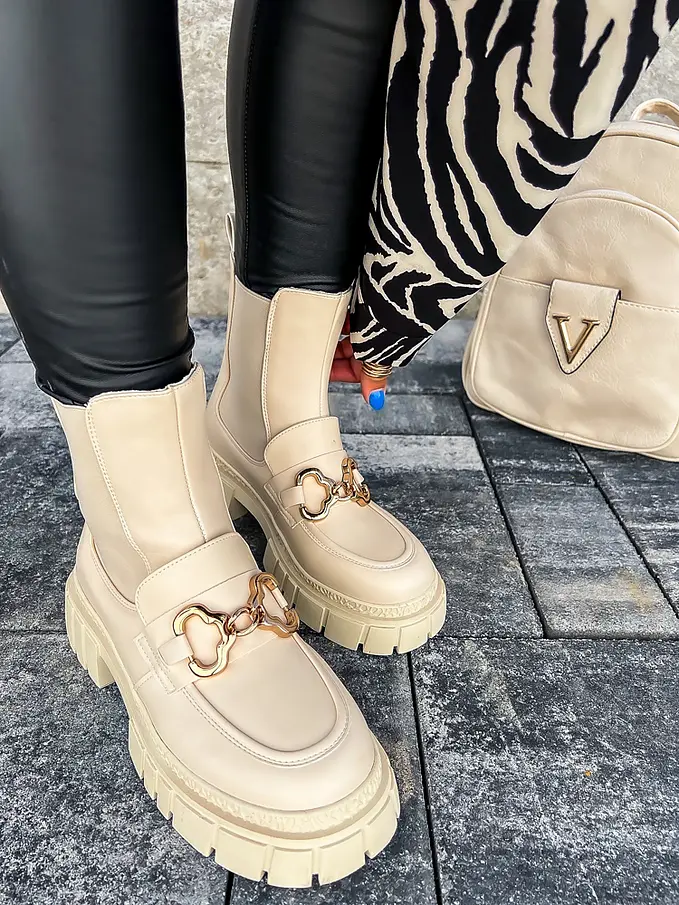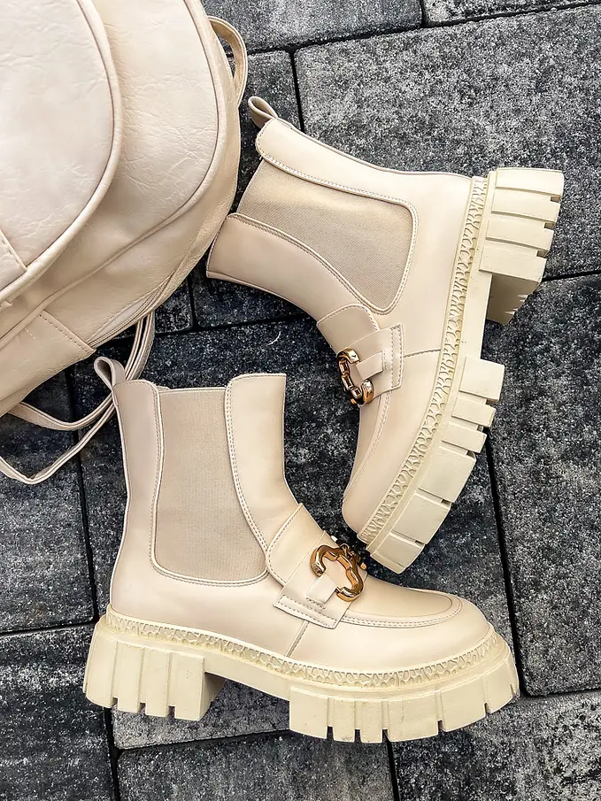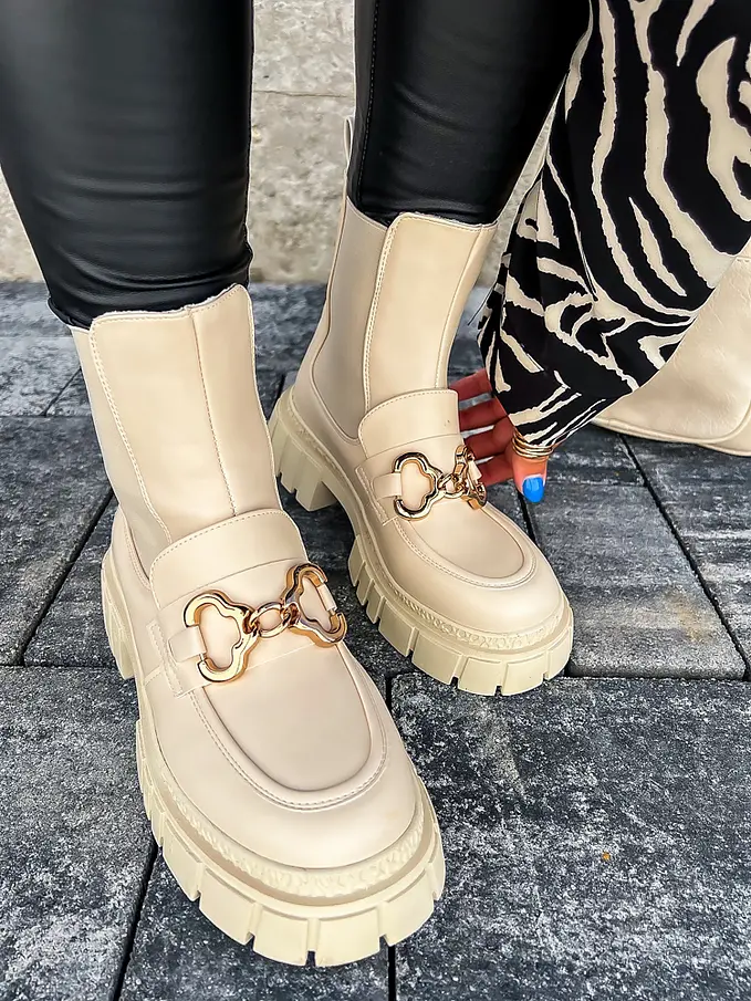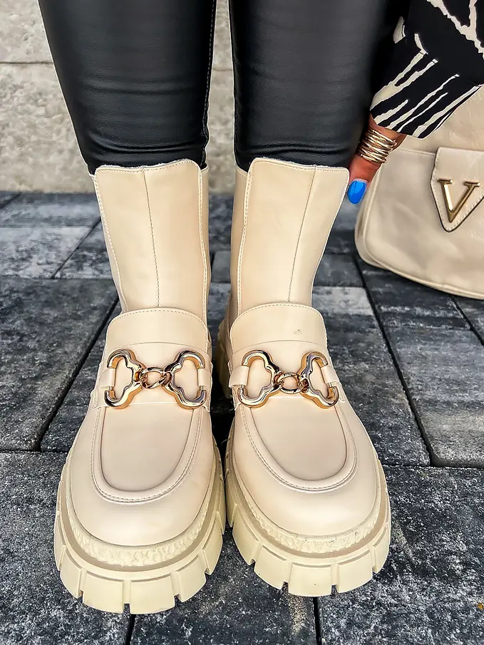Čižmy sú mierne zateplené. Ozdoba má zlatú farbu.