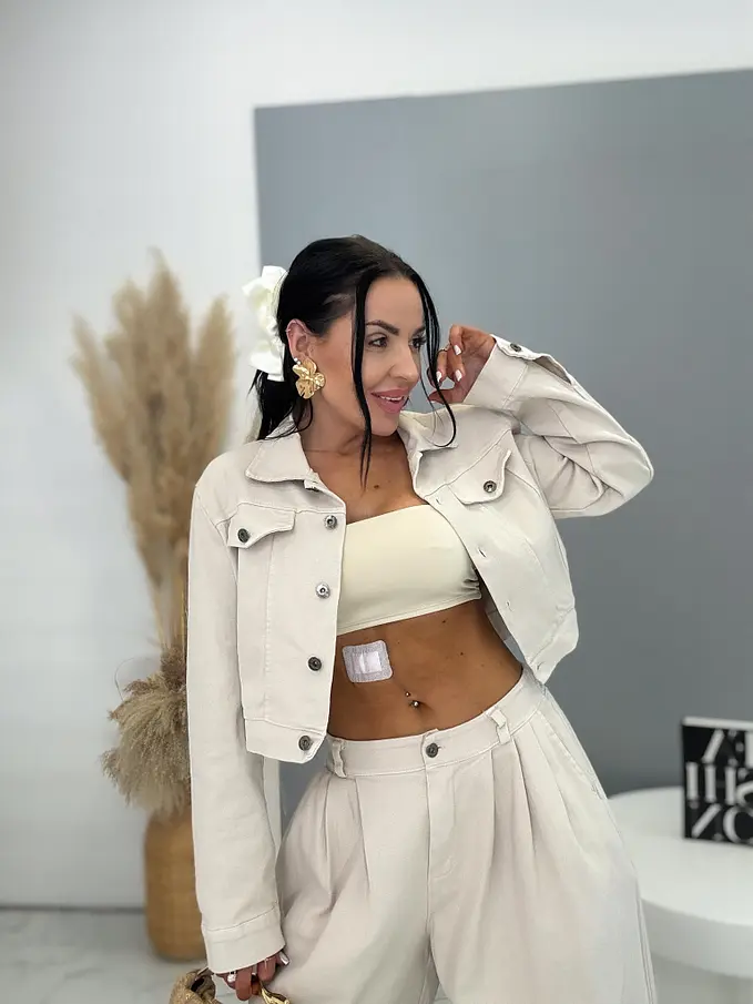 Dámsky denim bunda, priamo z Talianska. Materiál je príjemný, a mierne elastický. Gombíky majú striebornú farbu.