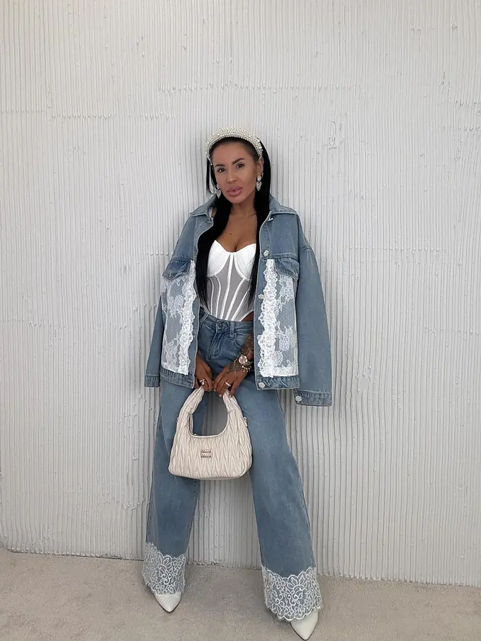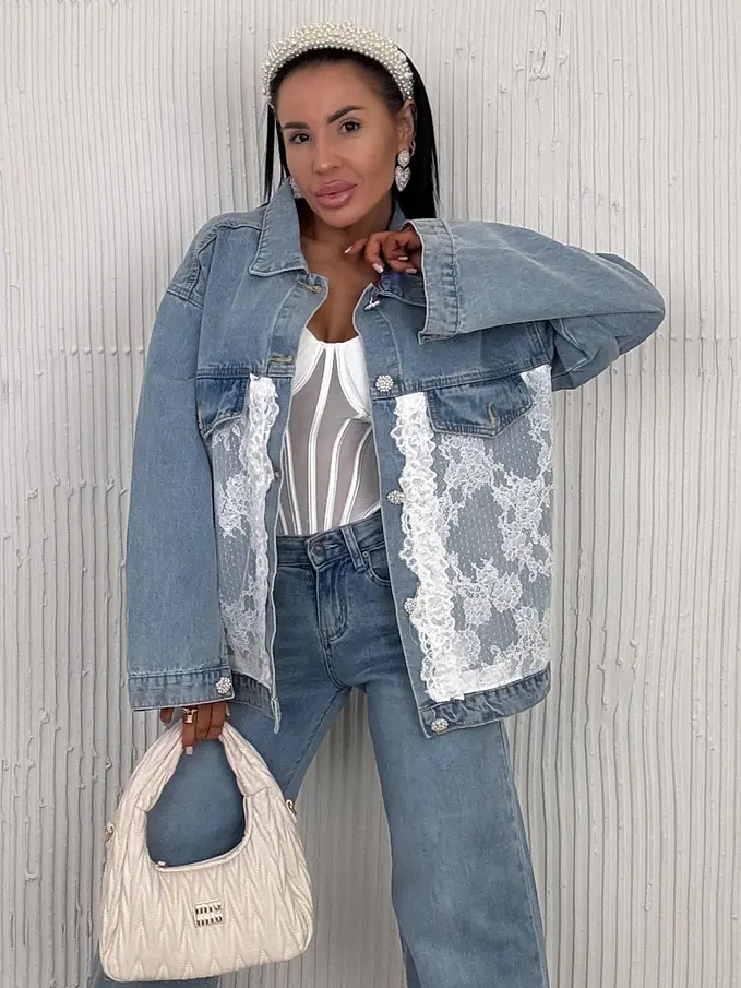 Dámska denim bunda s čipkou ARRYNA