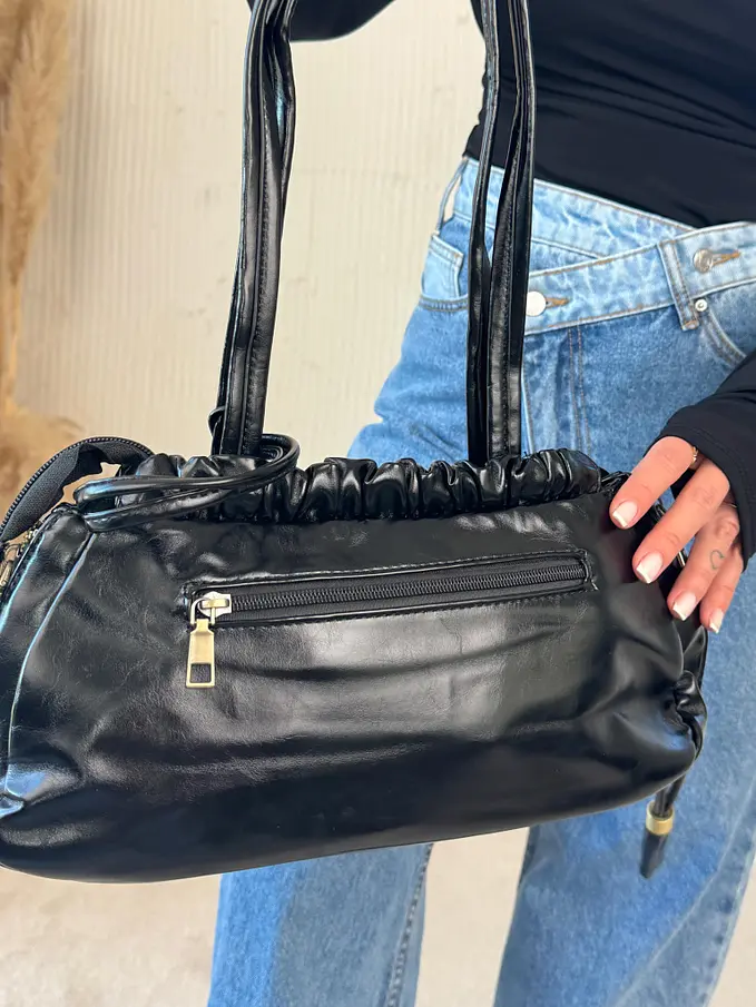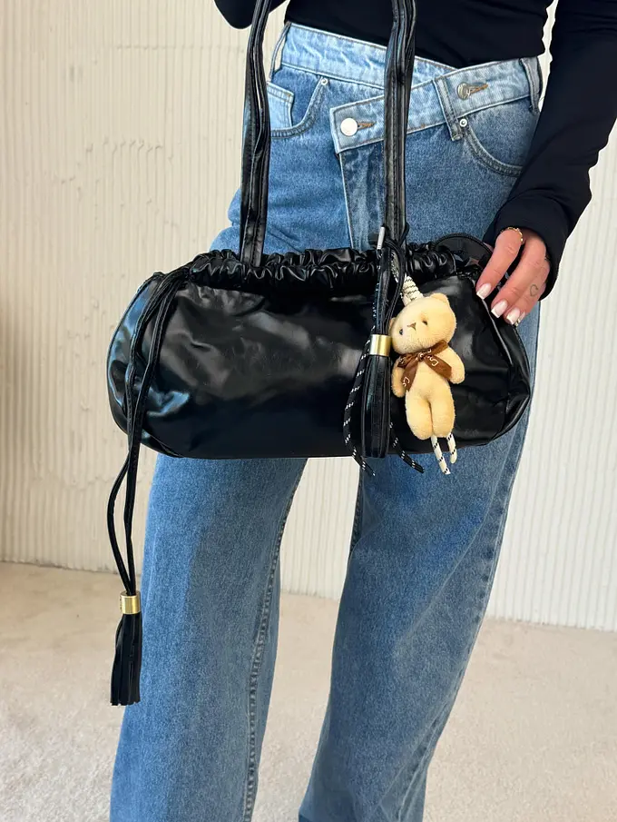 Extravagancia a elegancia v jednej kabelke. Vo vnútri je vrecko na uloženie drobností. Ozdoby majú zlatú farbu.