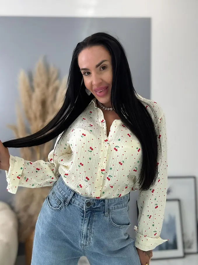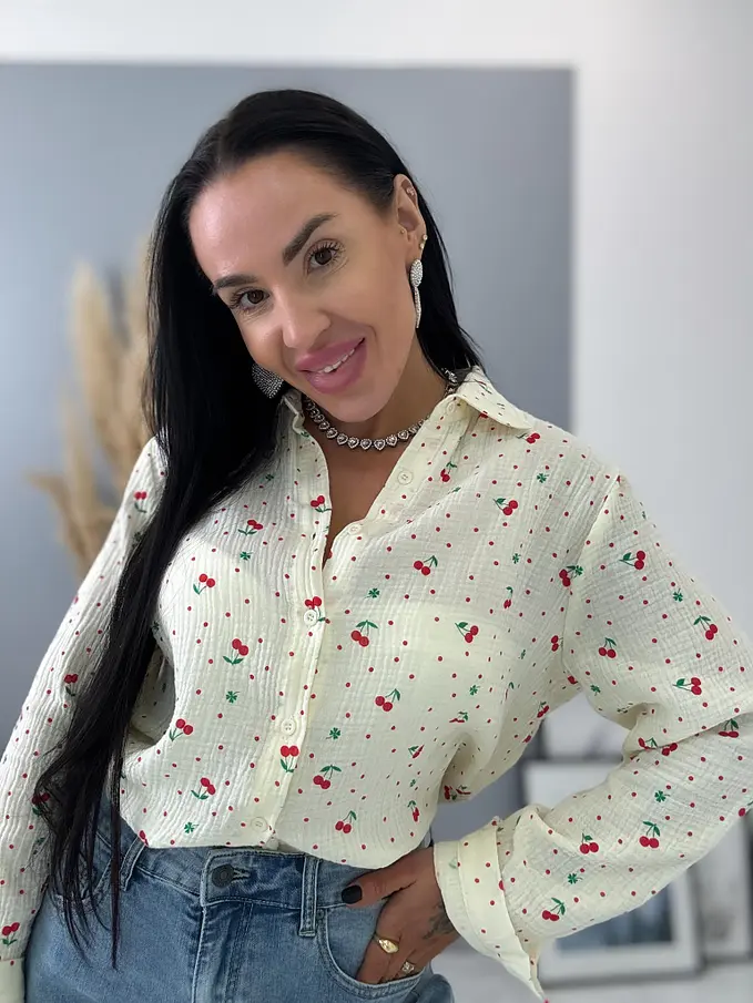 Dámska mušelínová blúzka s čerešničkami SHURI