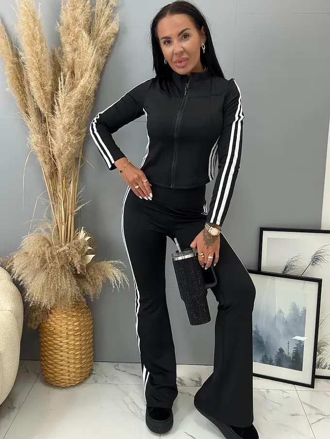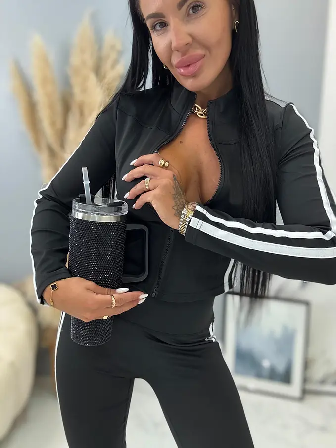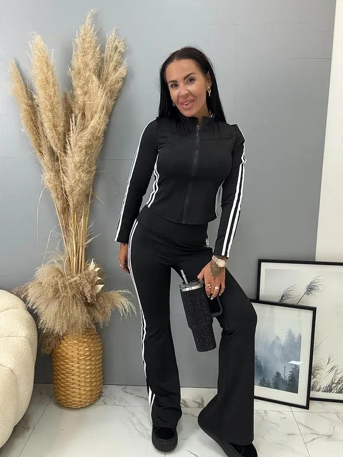 Dámsky komplet z novej kolekcie. Pozostáva z mikiny a nohavíc. Nohavice majú gumený pás. Materiál je príjemný, elastický.