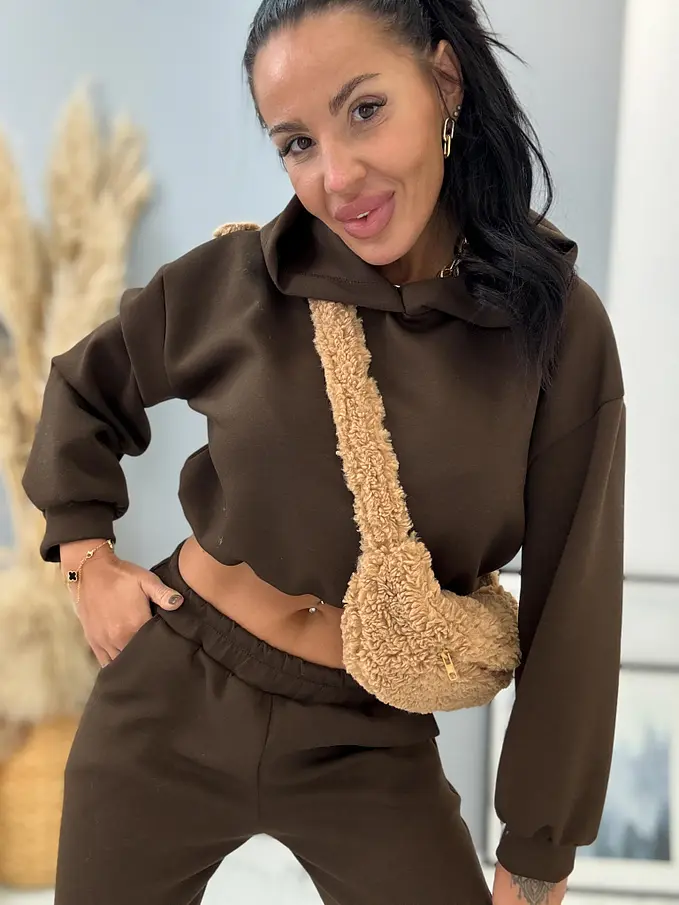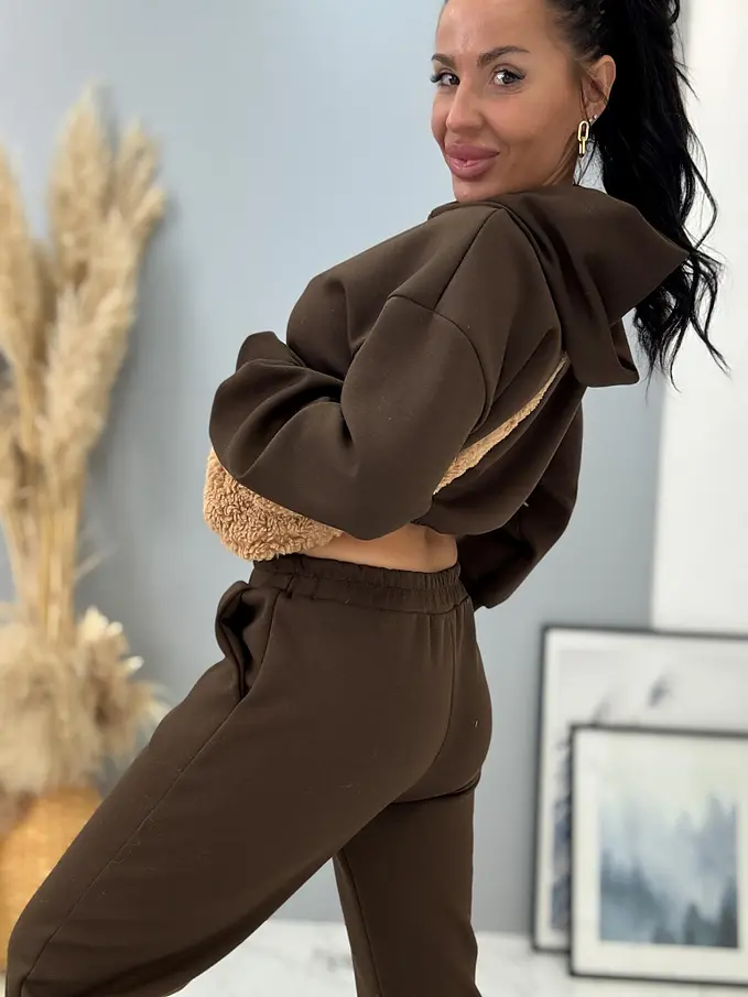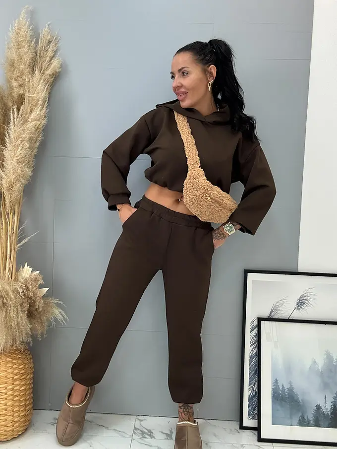 Dámsky komplet z novej kolekcie. Pozozstáva sa z mikini a nohavíc. Nohavice majú gumený pás. Materiál je príjemný, elastický.