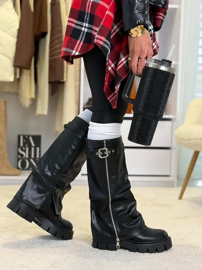Štýlová aj v sychravom počasí? Čižmy perfektne doplnia napríklad slim džínsy a vestu z kožušinky.