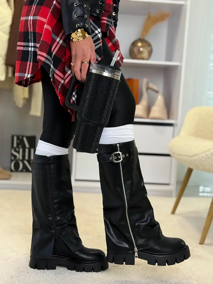 Štýlová aj v sychravom počasí? Čižmy perfektne doplnia napríklad slim džínsy a vestu z kožušinky.