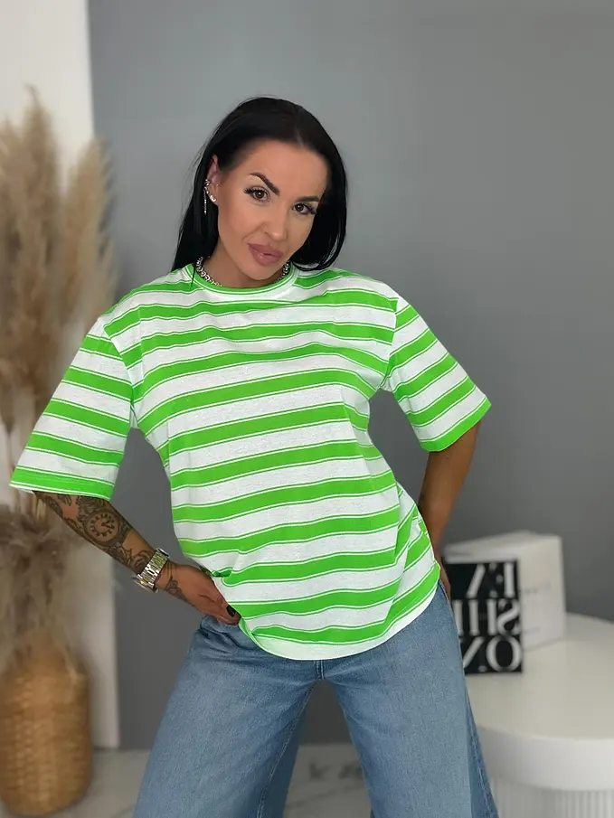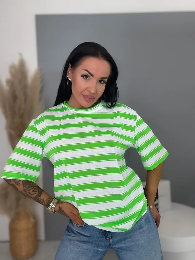 Dámske pásikavé tričko s potlačou NEO STRIP