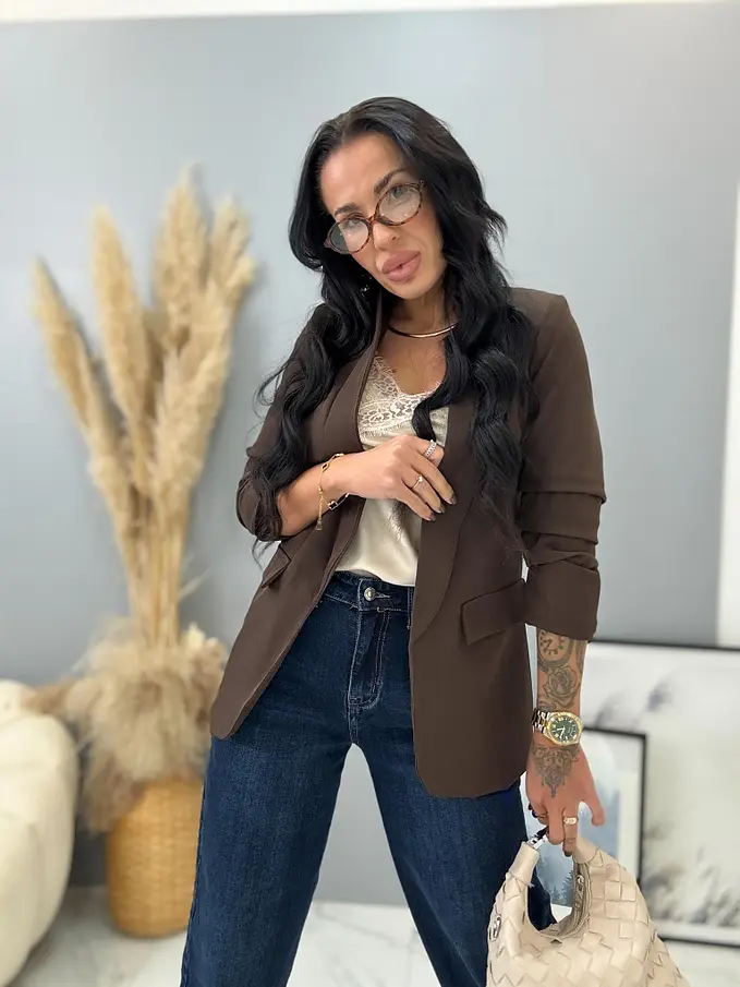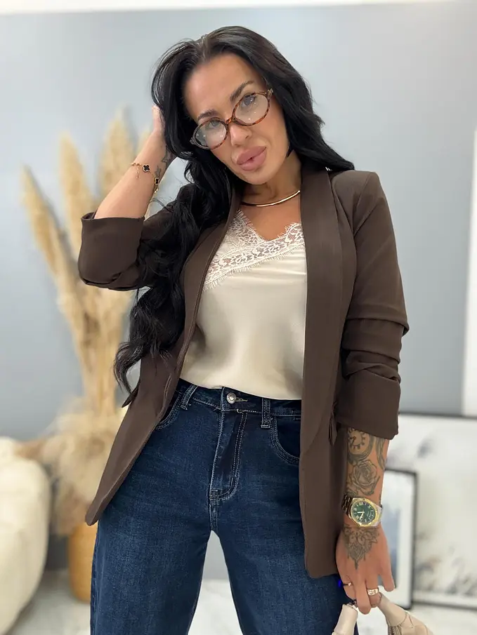 Modelka meria 164 cm a váží 57 kg. Nosí veľkosť S.
