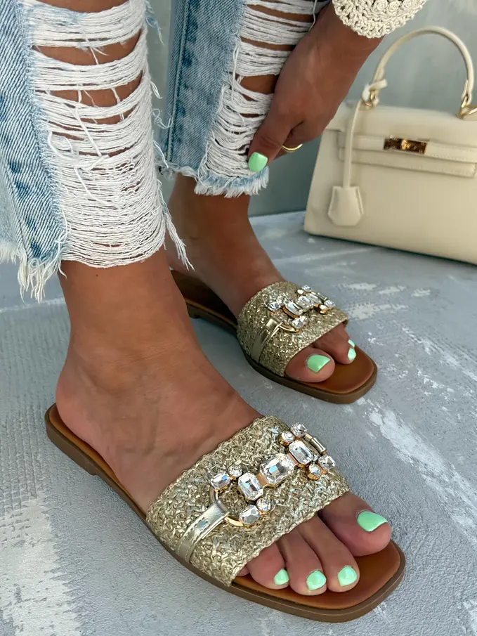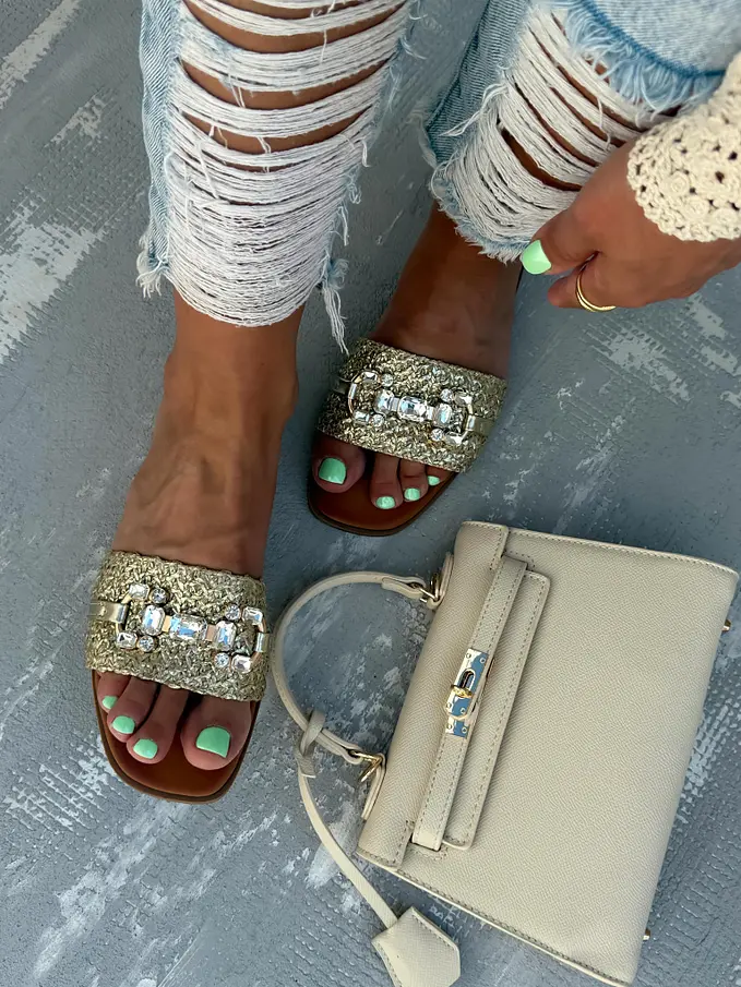 Dámske šľapky so striebornou ozdobou ARUNA-