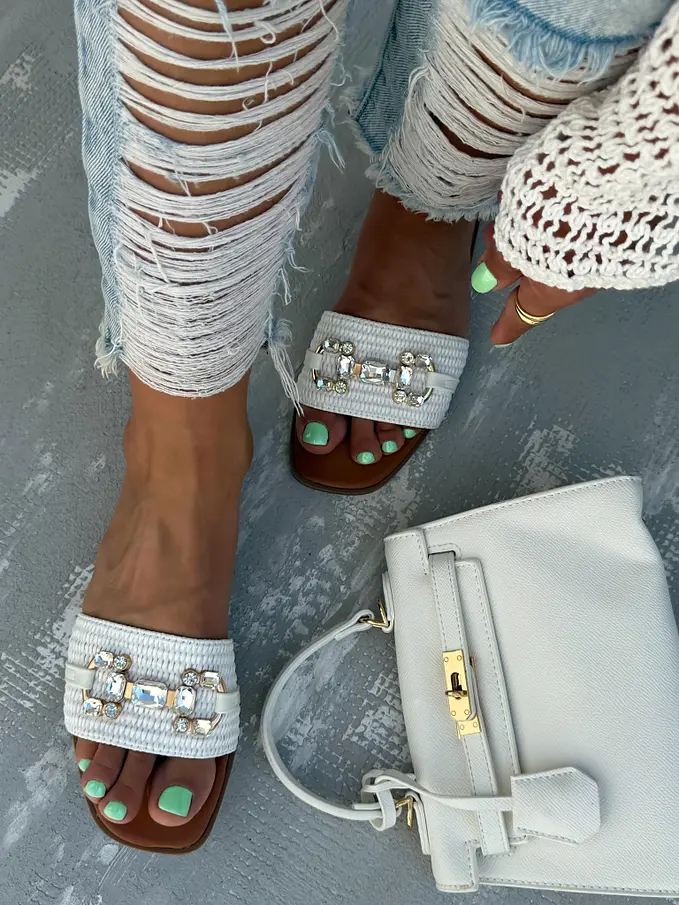 Dámske šľapky so striebornou ozdobou ARUNA-