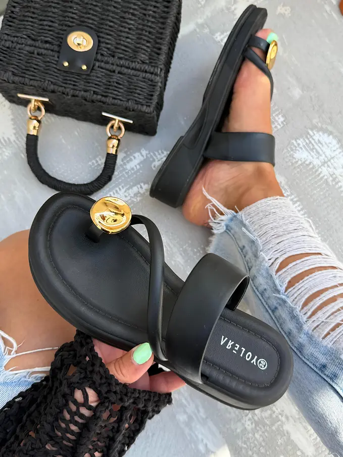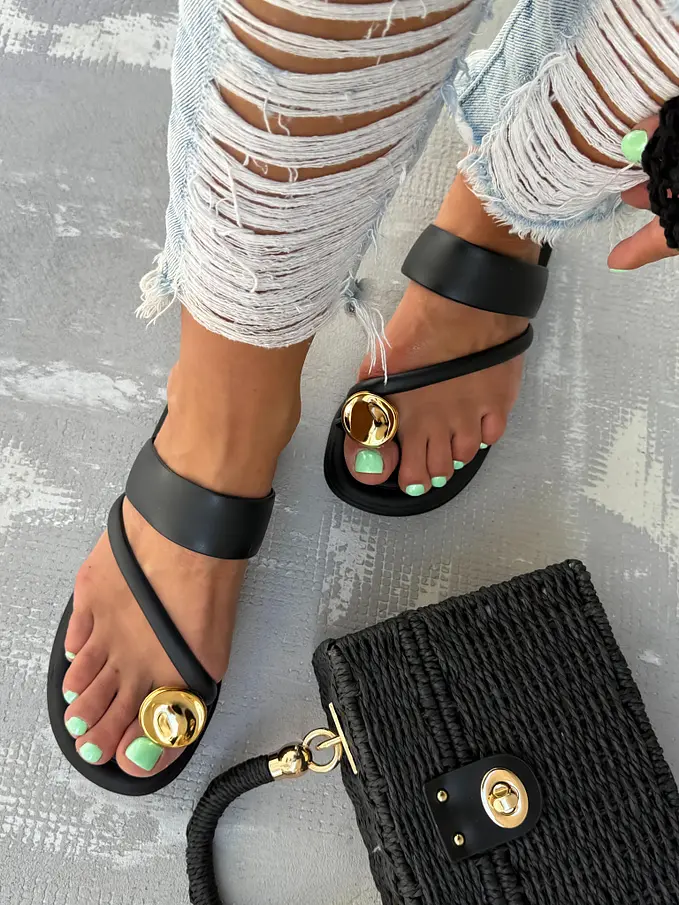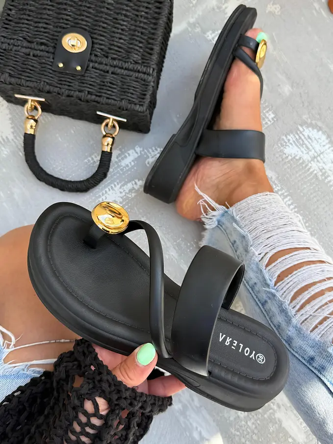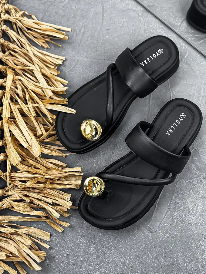 Dámske šľapky so zlatou ozdobou ALIENOR-