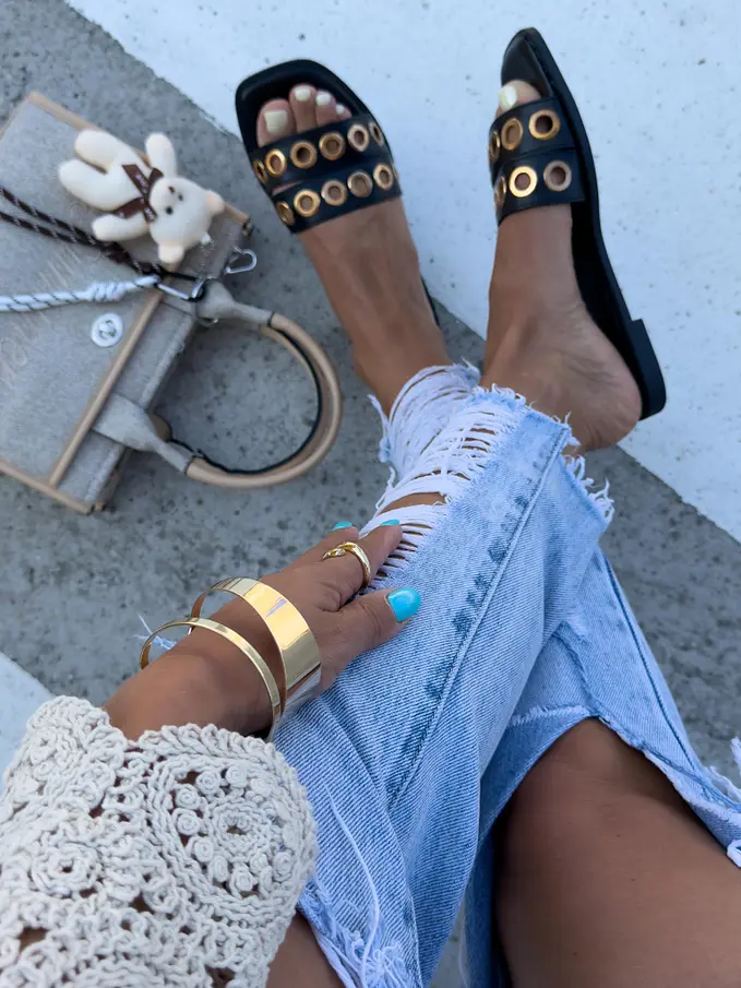 Dámske šľapky so zlatou ozdobou JULIE-