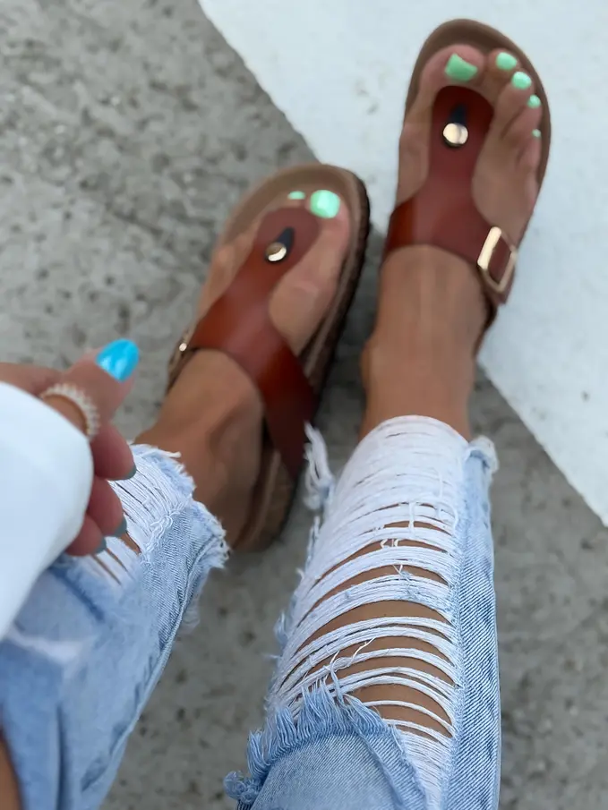 Dámske šľapky so zlatou ozdobou PAULINA-