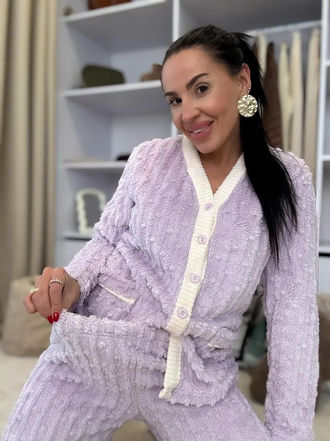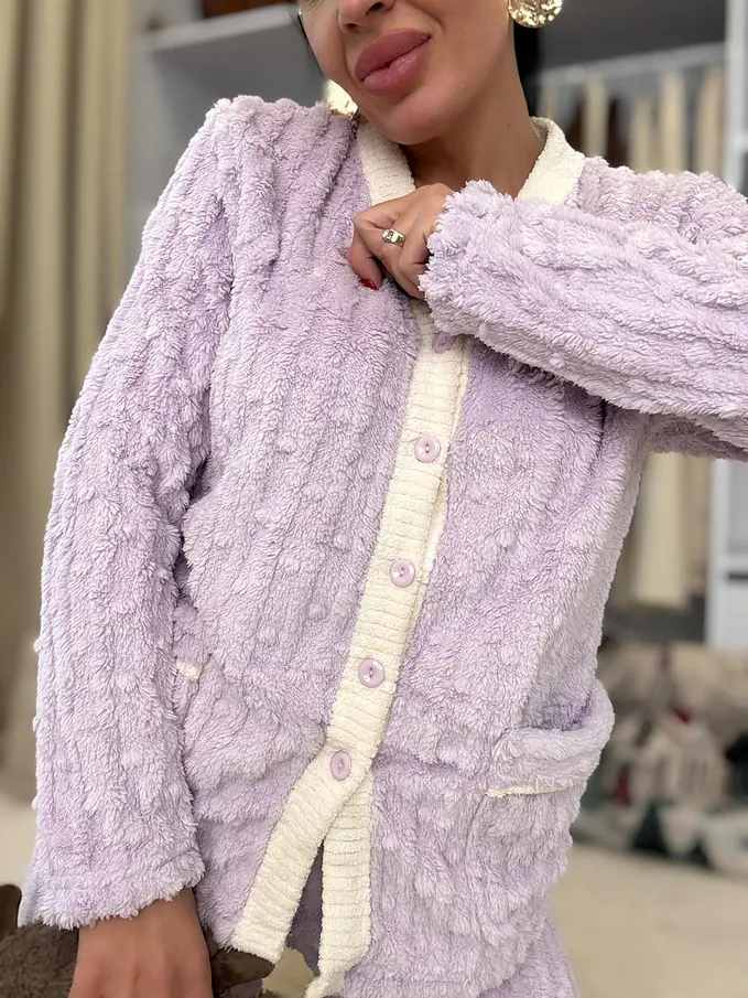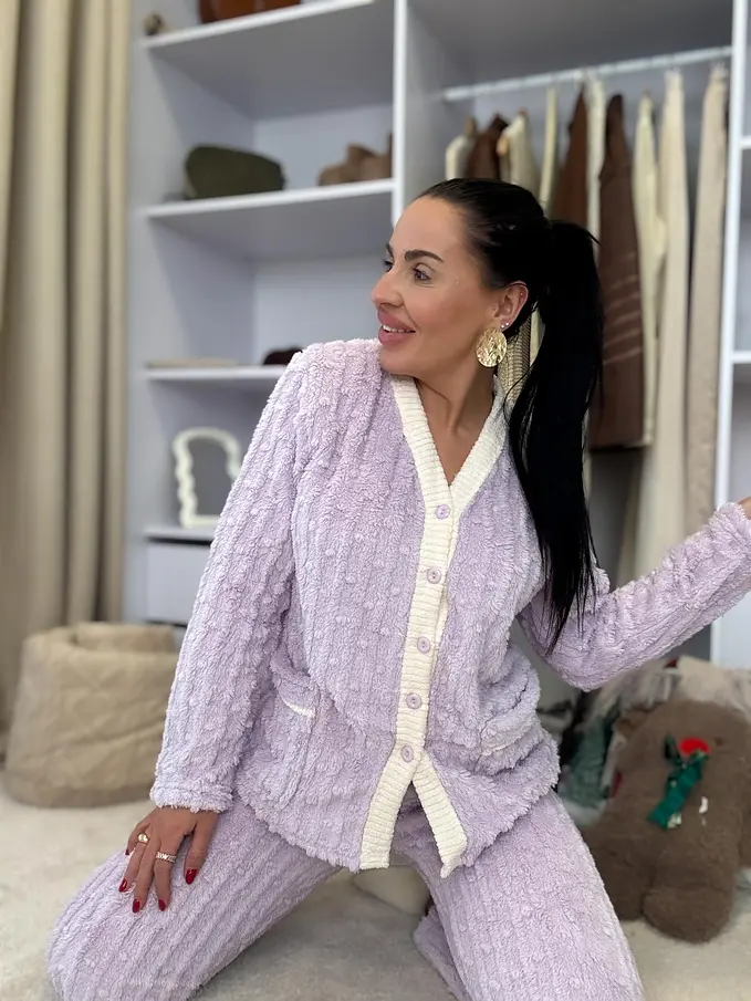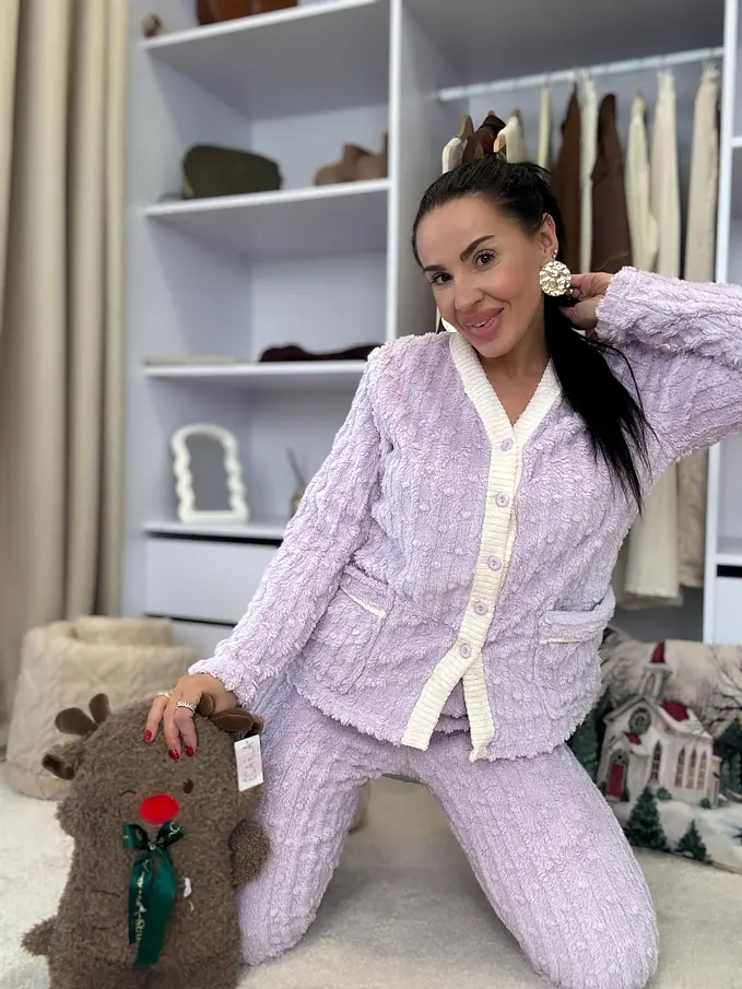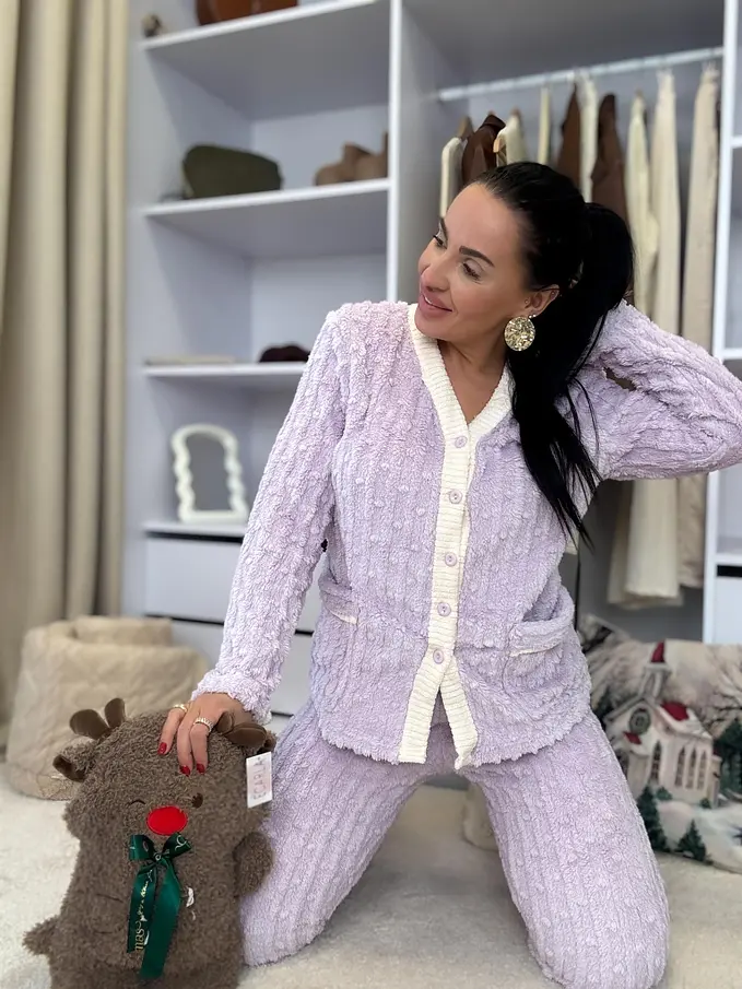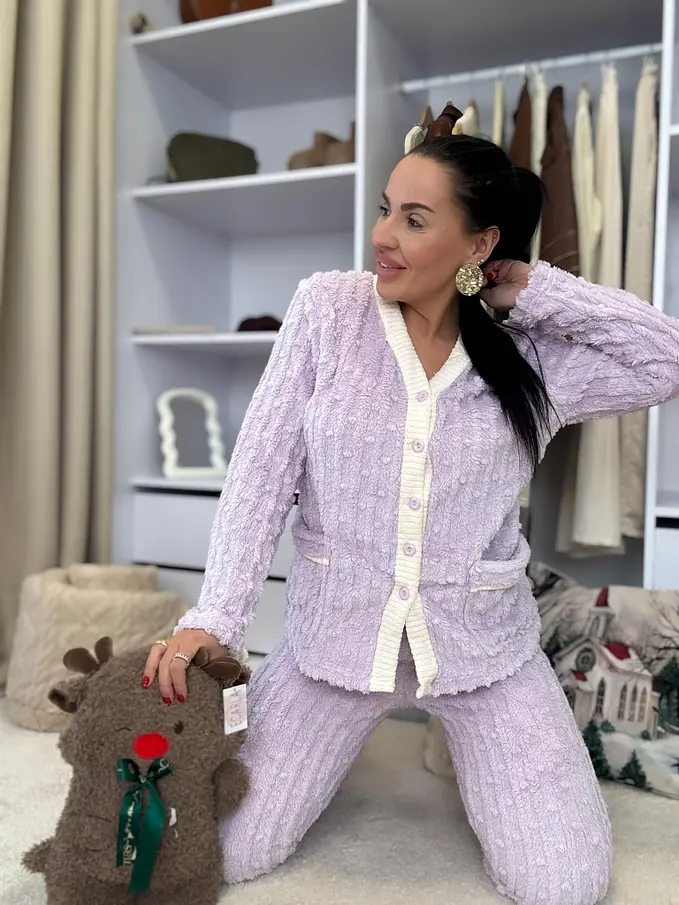 Pohodlné, teplé, mäkučké pyžamo. Nohavice majú gumený pás. Horná časť so zapínaním na gombíky.