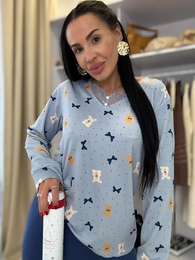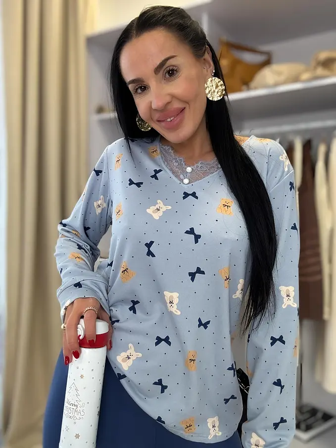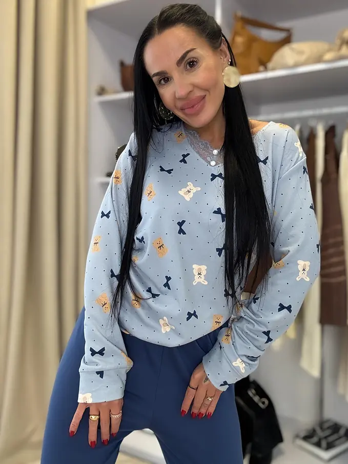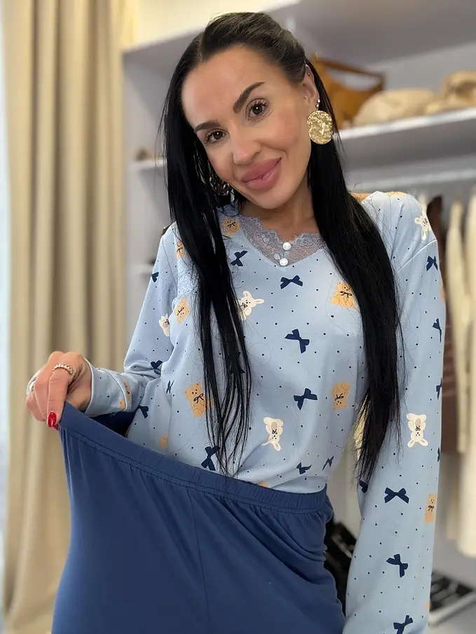 Pohodlné, teplé, mäkučké pyžamo. Nohavice majú gumený pás. Horná časť so zapínaním na gombíky.