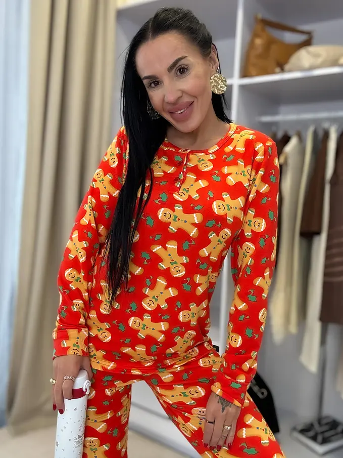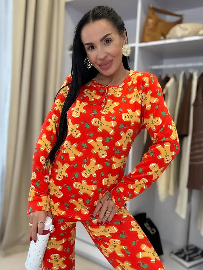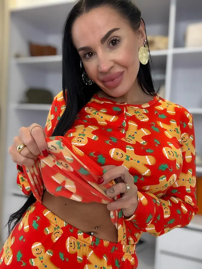 Pohodlné, teplé, mäkučké pyžamo. Nohavice majú gumený pás. Horná časť s gombíkovou légou.